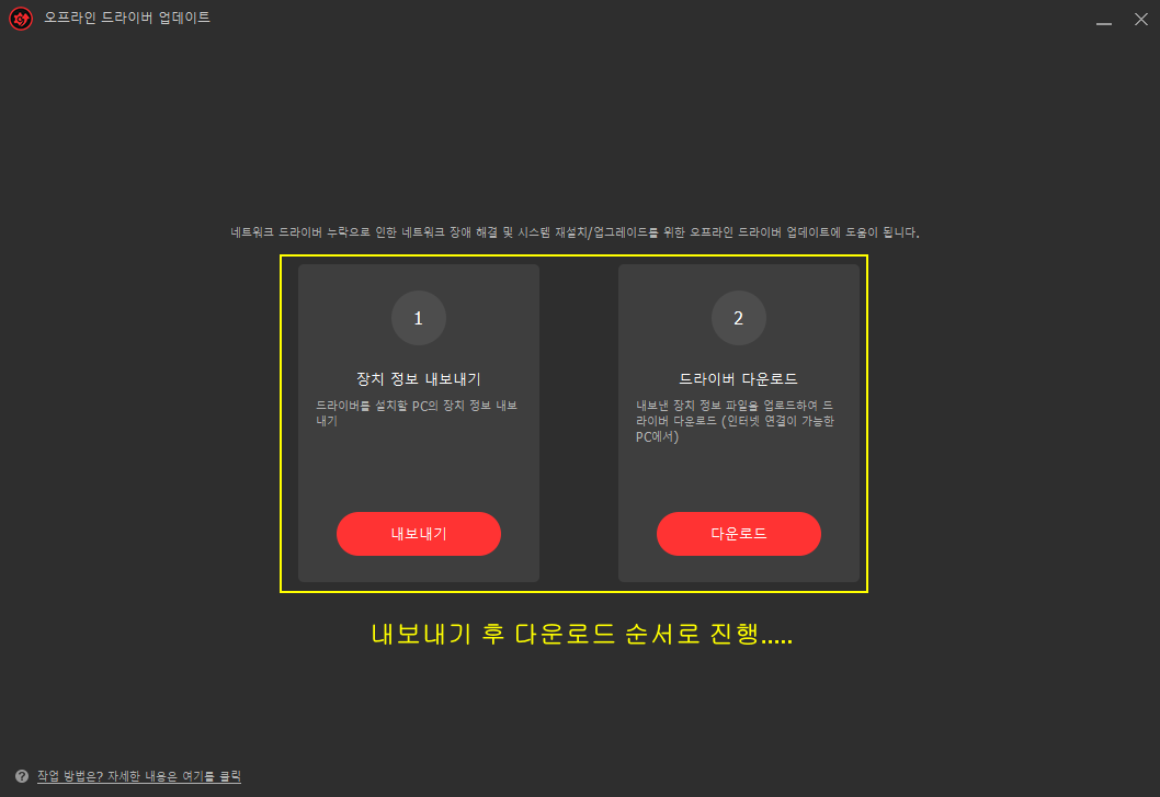 - 오프라인 드라이버 업데이트 : 네트워크 연결없이 PC용 드라이버를 다운로드하여 설치