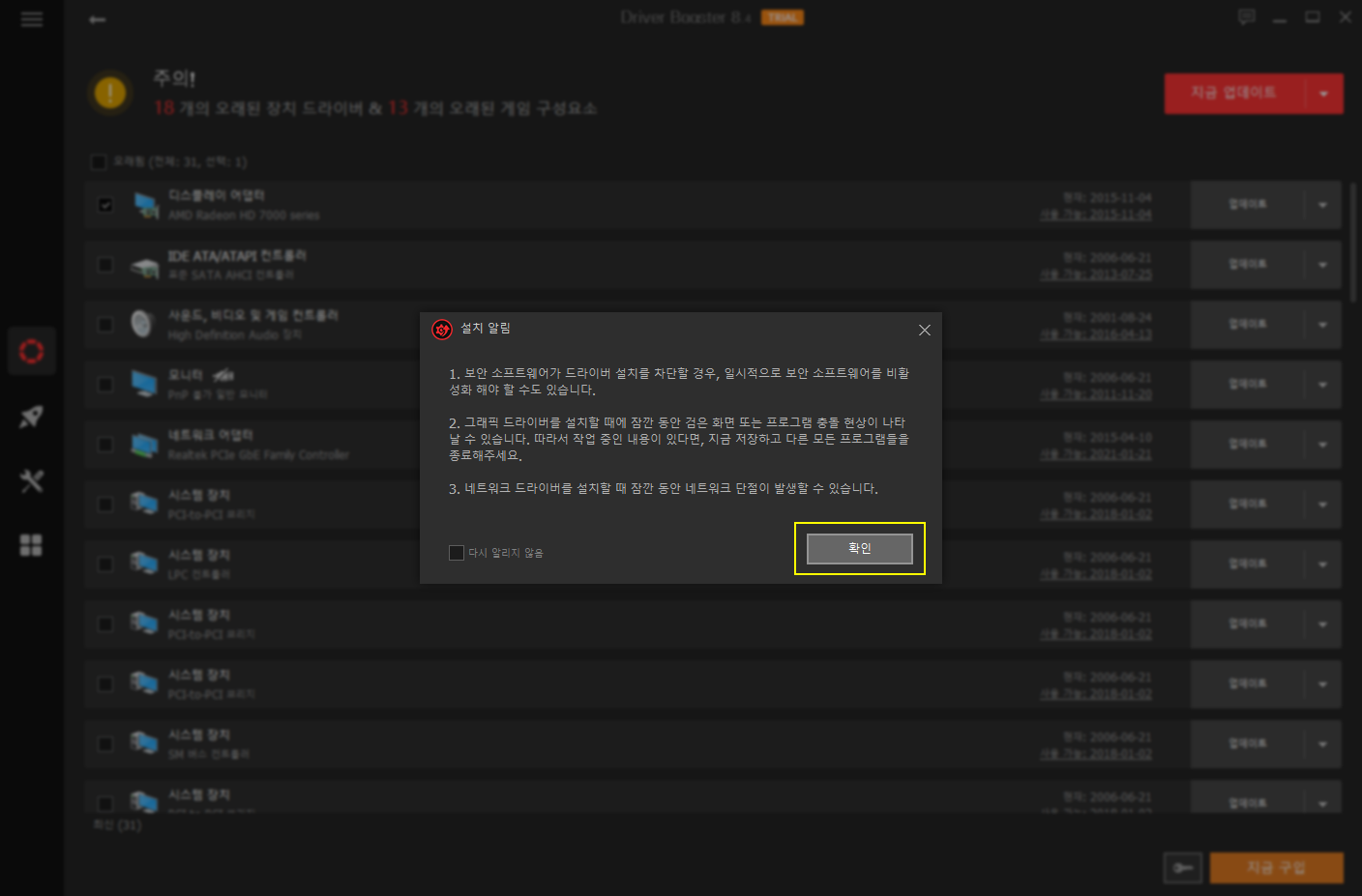 IObit Driver Booster 프로그램 설치 방법 및 메뉴의 전반적인 부분만 설명합니다. 설명에 사용되는 캡처 이미지는 무료버전과 트라이얼 버전이 혼용되어 있습니다.