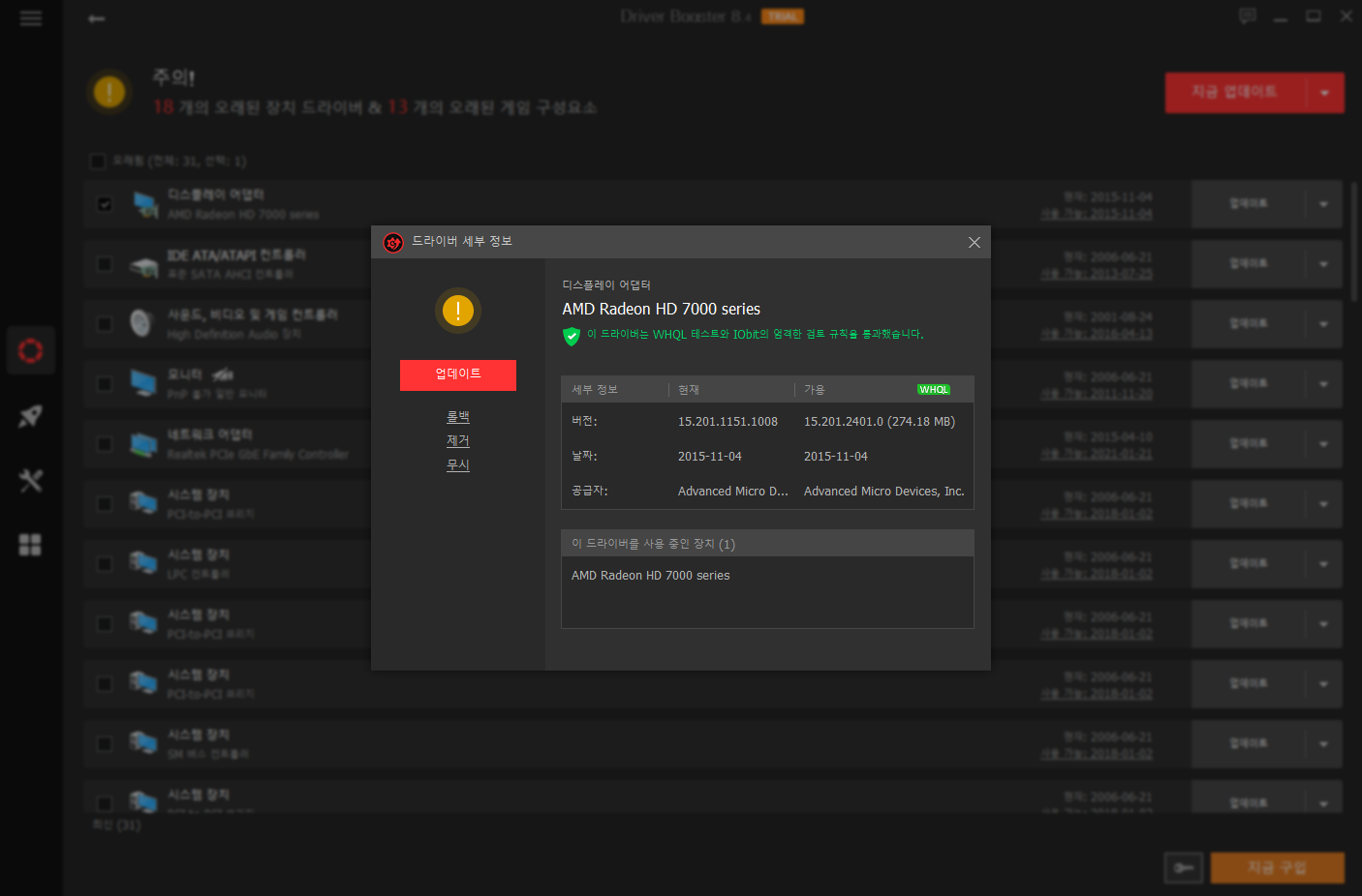 - 세부 정보 : 현재 설치된 드라이버와 새로운 드라이버에 대한 자세한 정보