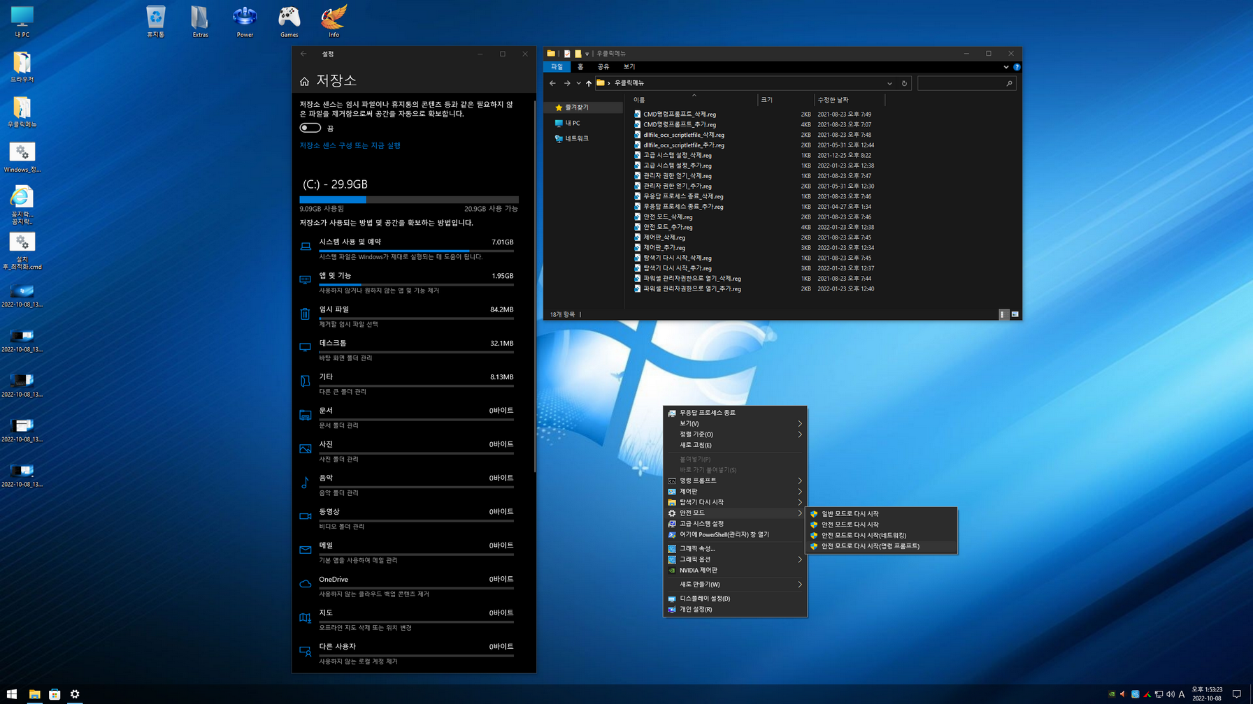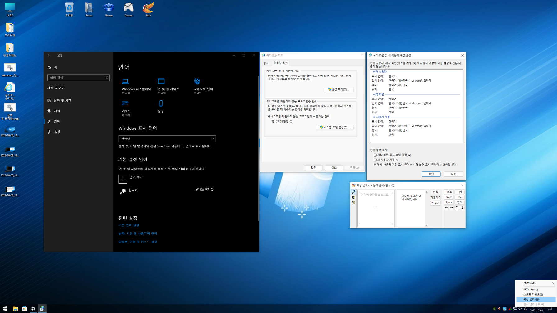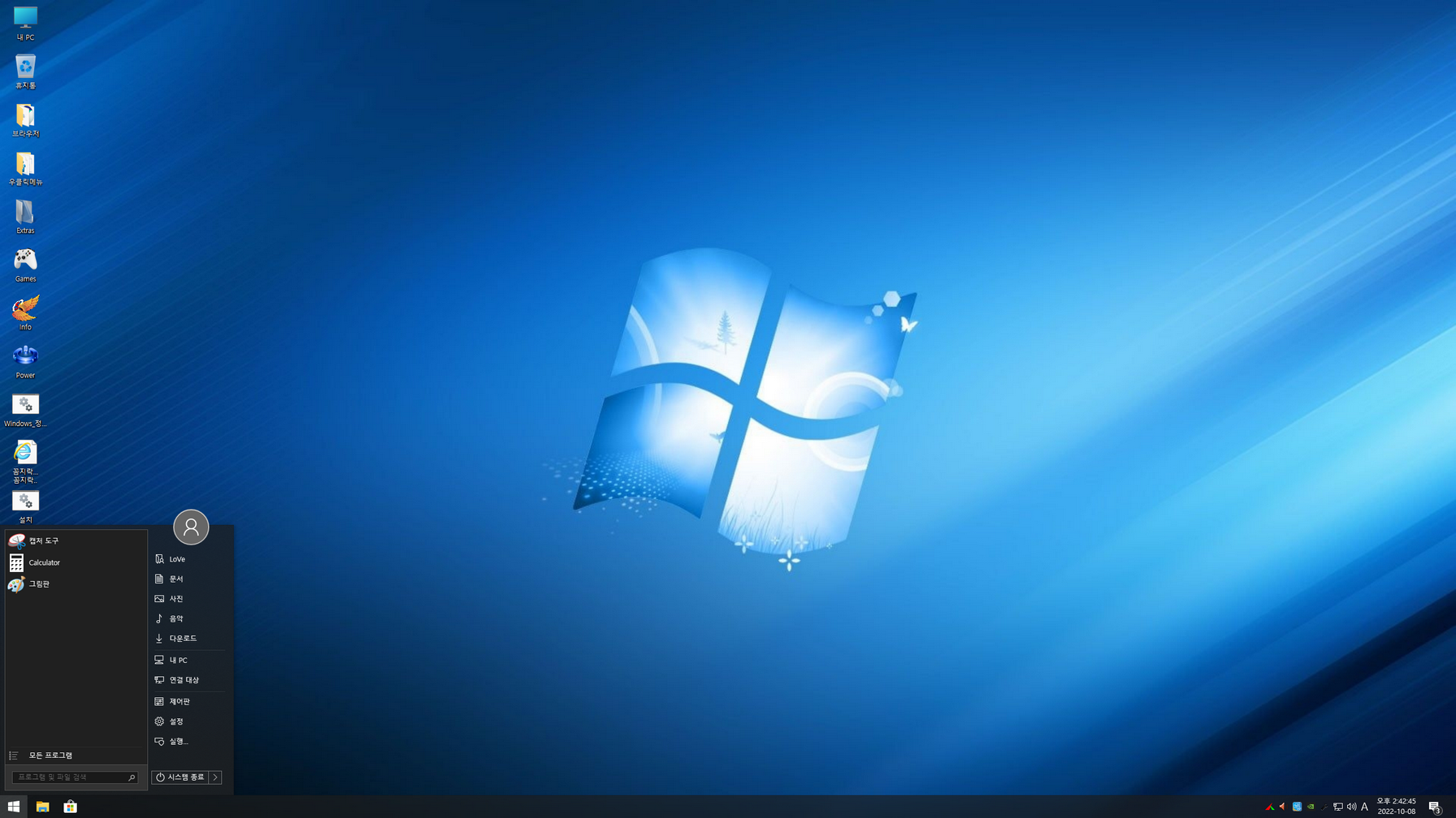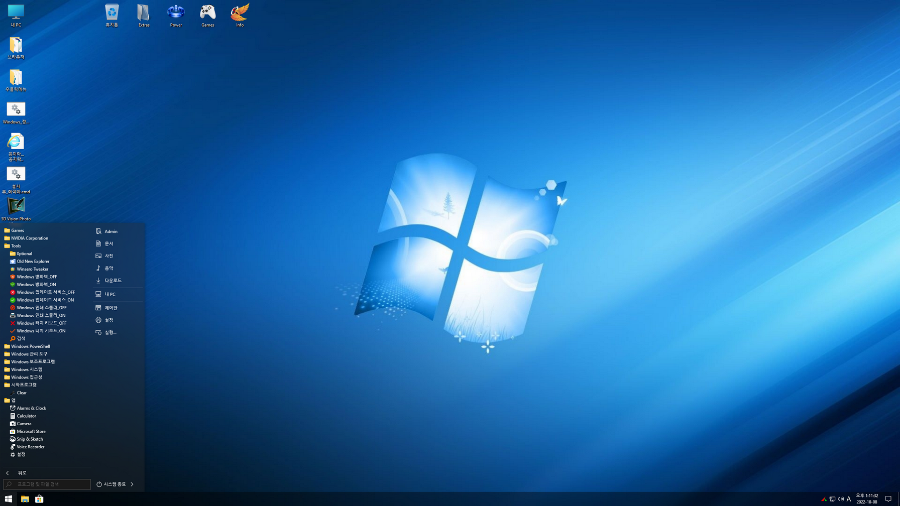 설치는 Admin(사용자 - 관리 계정)과 사용자 계정(오프라인 계정)으로 설치할 수 있으며, 용량문제로 **************.esd 이미지로 마무리합니다. 두 가지 계정 모두 첫 바탕화면 진입 후, 한국어 설정 마무리와 제작자 트윅 적용으로 30초 뒤에 재부팅이 됩니다.
