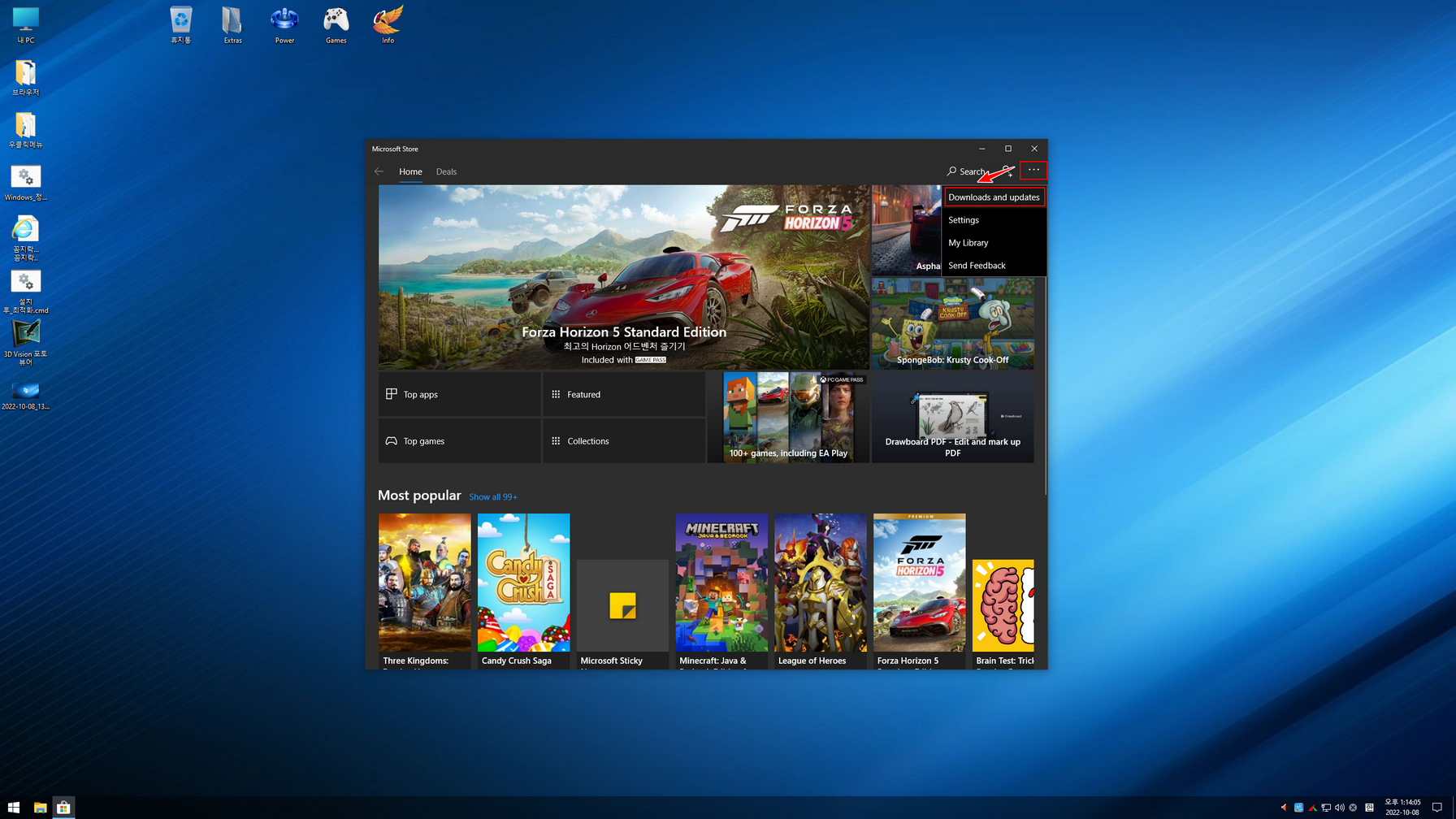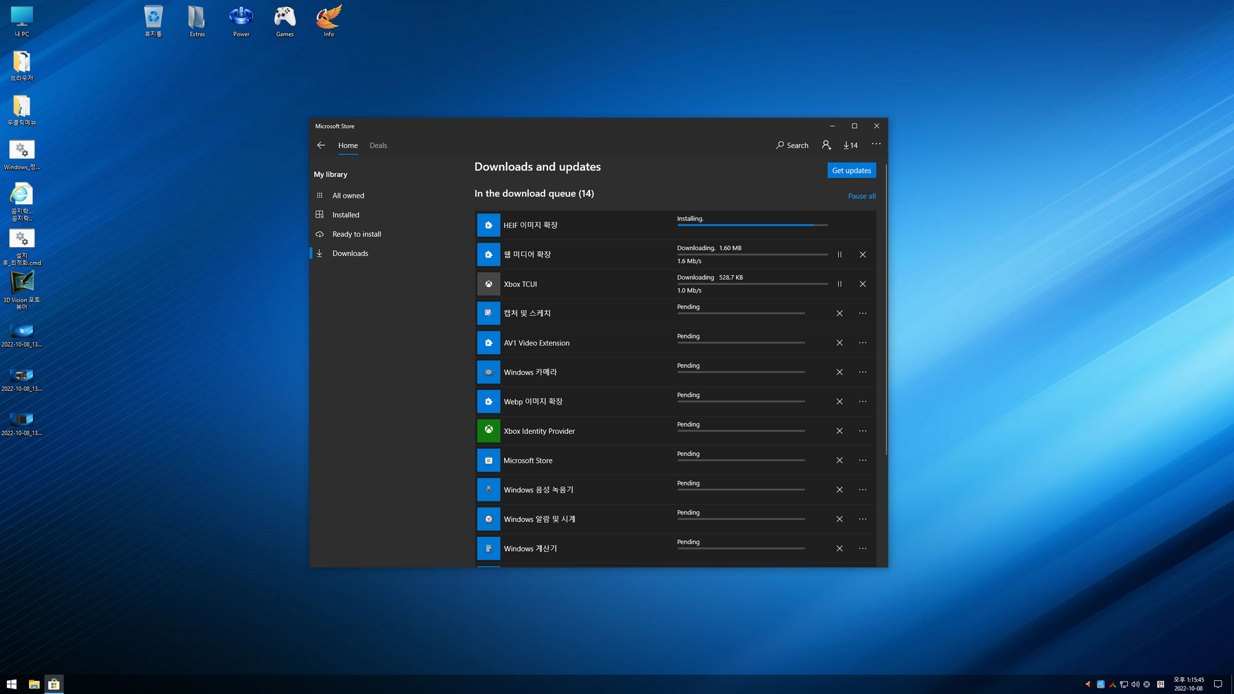 스토어 및 UWP 앱의 한국어 적용으로 위해 스토어 앱을 실행한 다음, 모든 앱을 업데이트하시면 됩니다.
