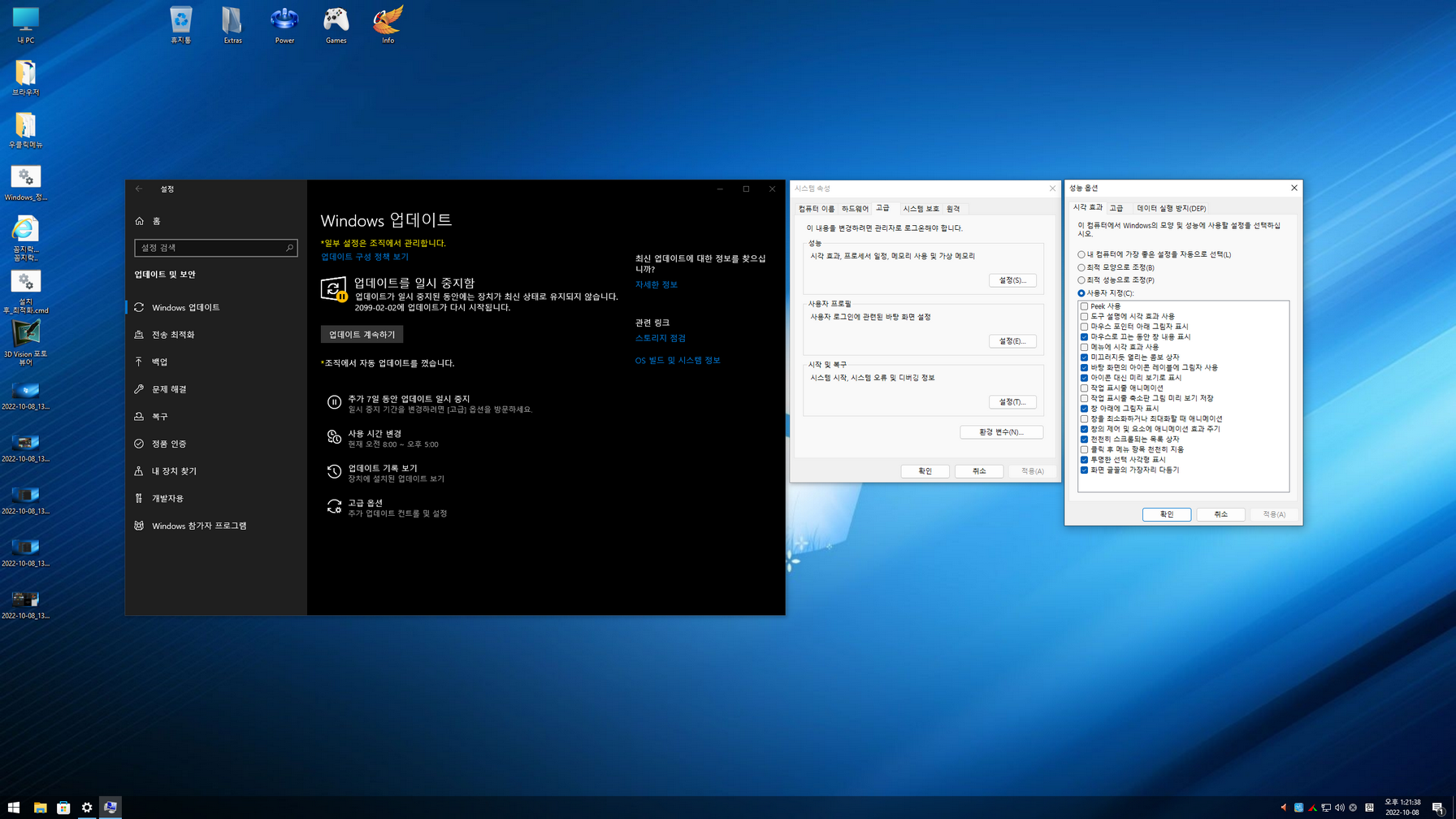 - 자동 업데이트(기능 및 보안) 비활성화(2099년 까지 일시 중지)