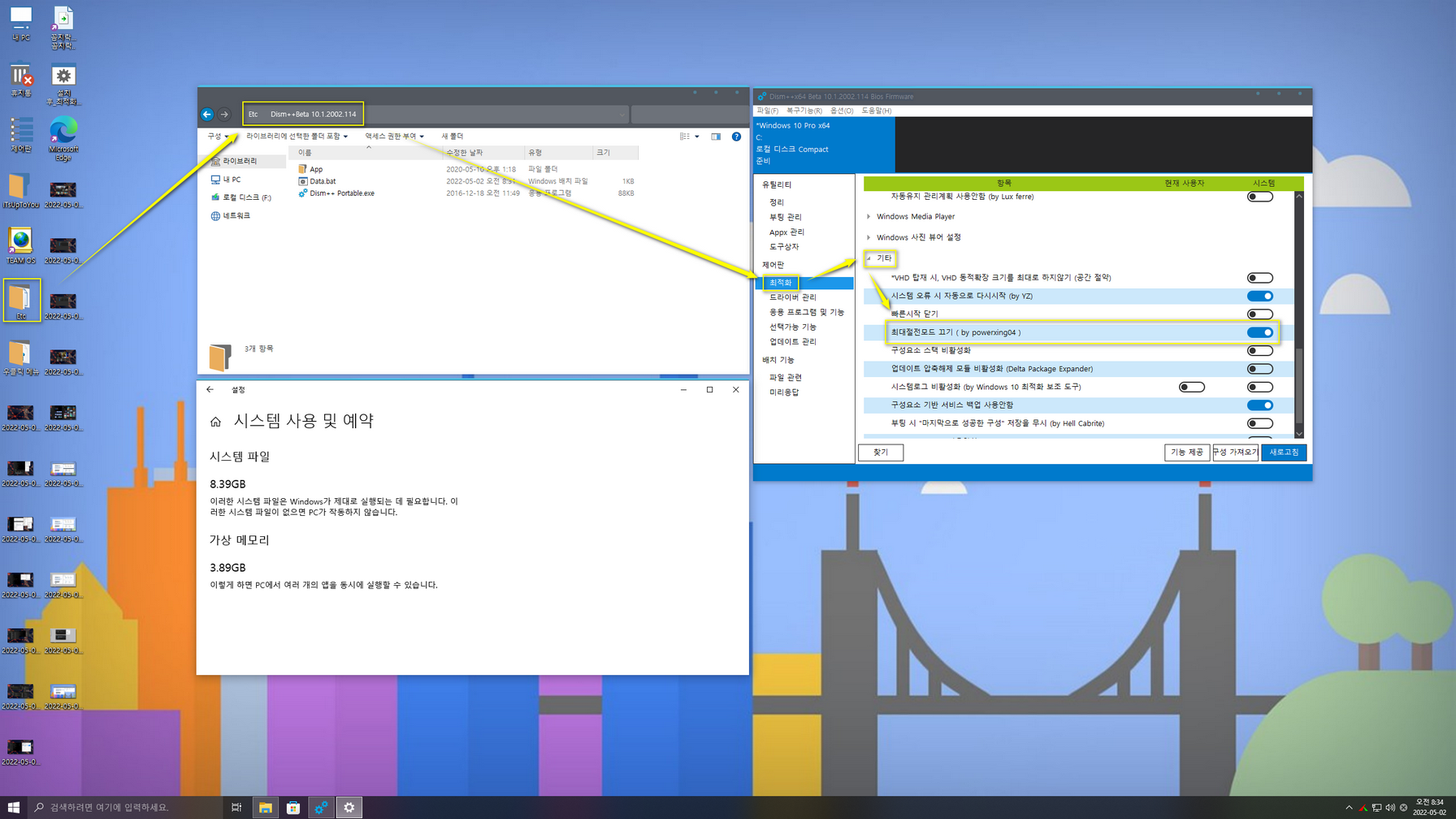 트윅된 윈도우는 적당한 기능이 삭제된 윈도우이며, 현재까지 누적 업데이트는 잘 적용됩니다. 지역화하면서 영어 부분은 용량 정리를 위해 삭제하려다, 언어 추가 부분과 일부 기능에서 에러가 나와 수동으로 일부분만 정리하여 마무리했습니다.