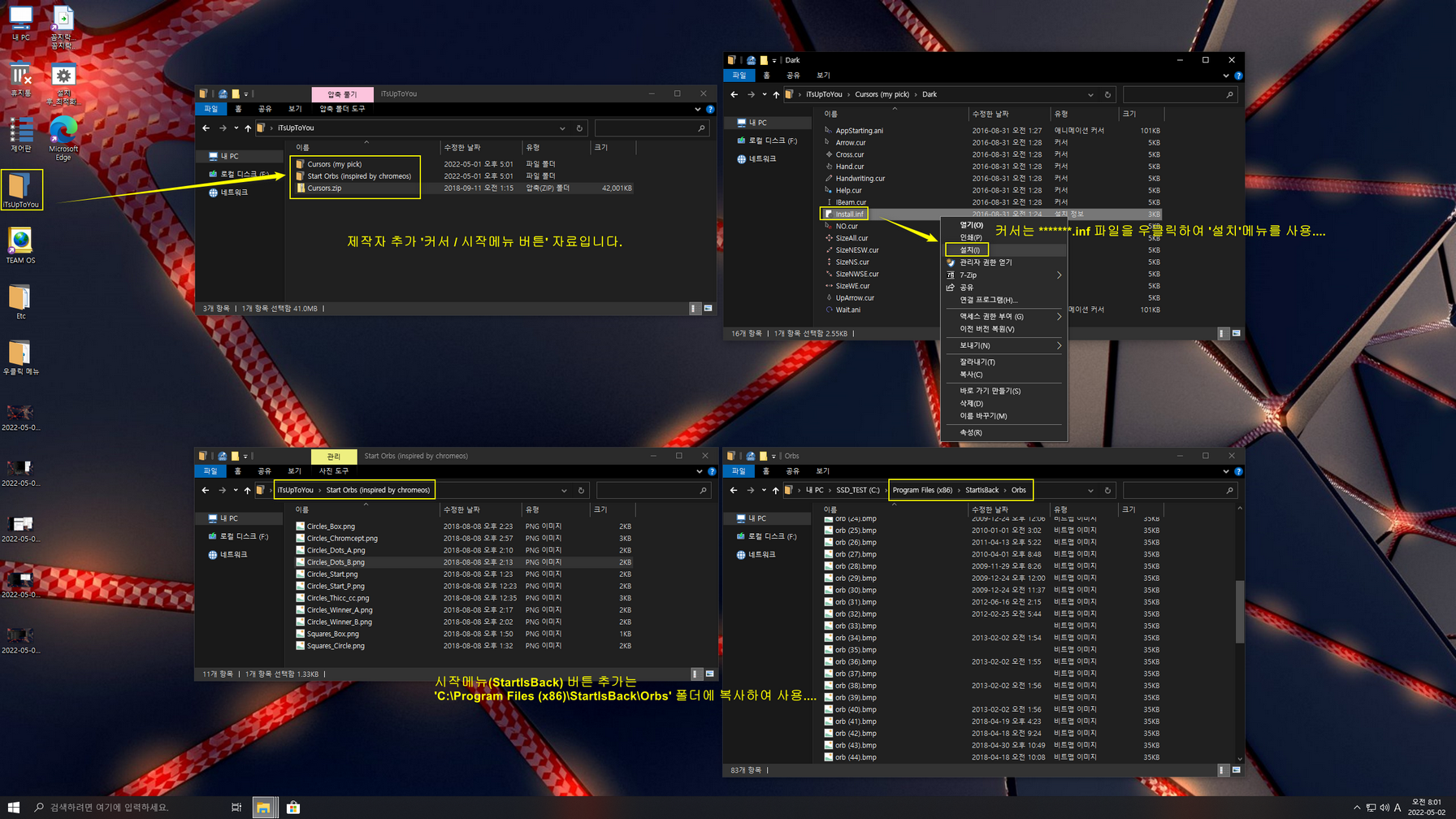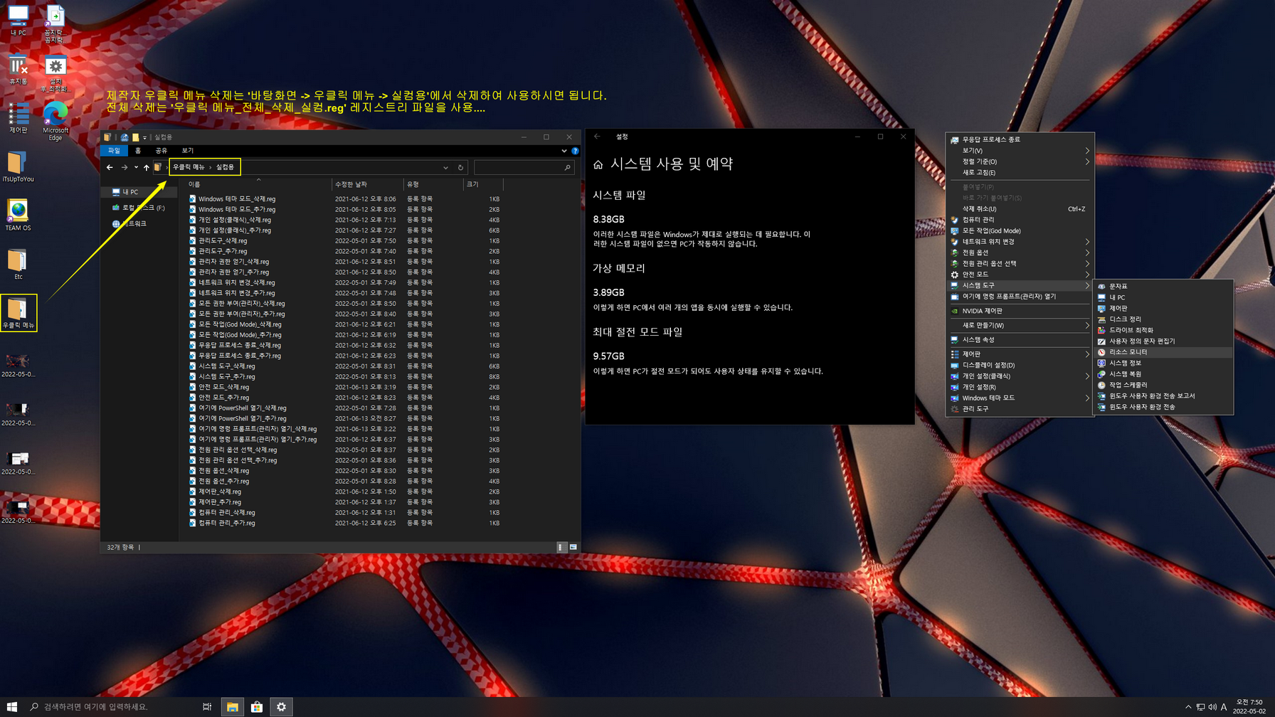 - 우클릭 메뉴 한글화 작업(바탕화면 '우클릭 메뉴' 폴더에서 삭제 가능)