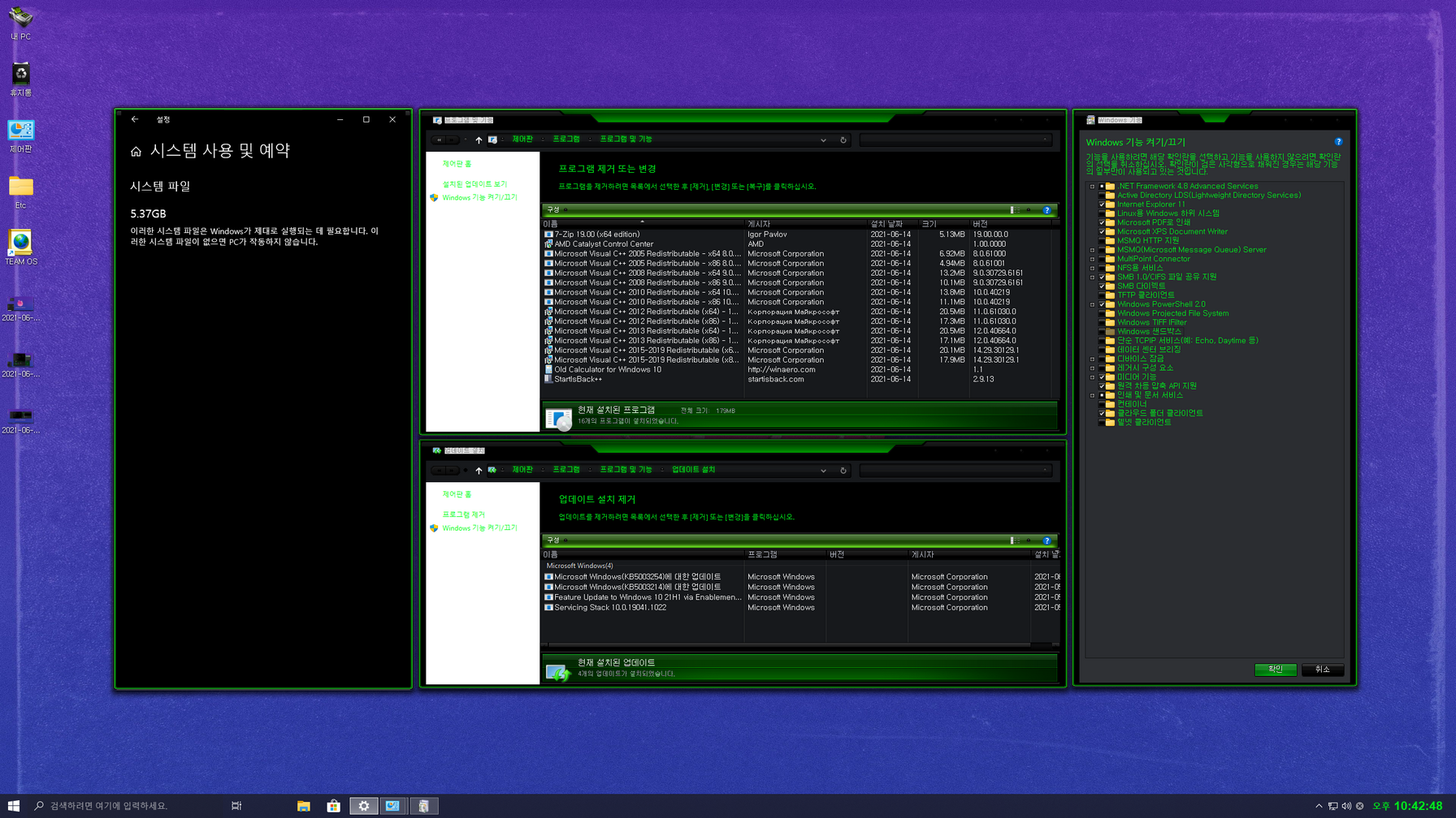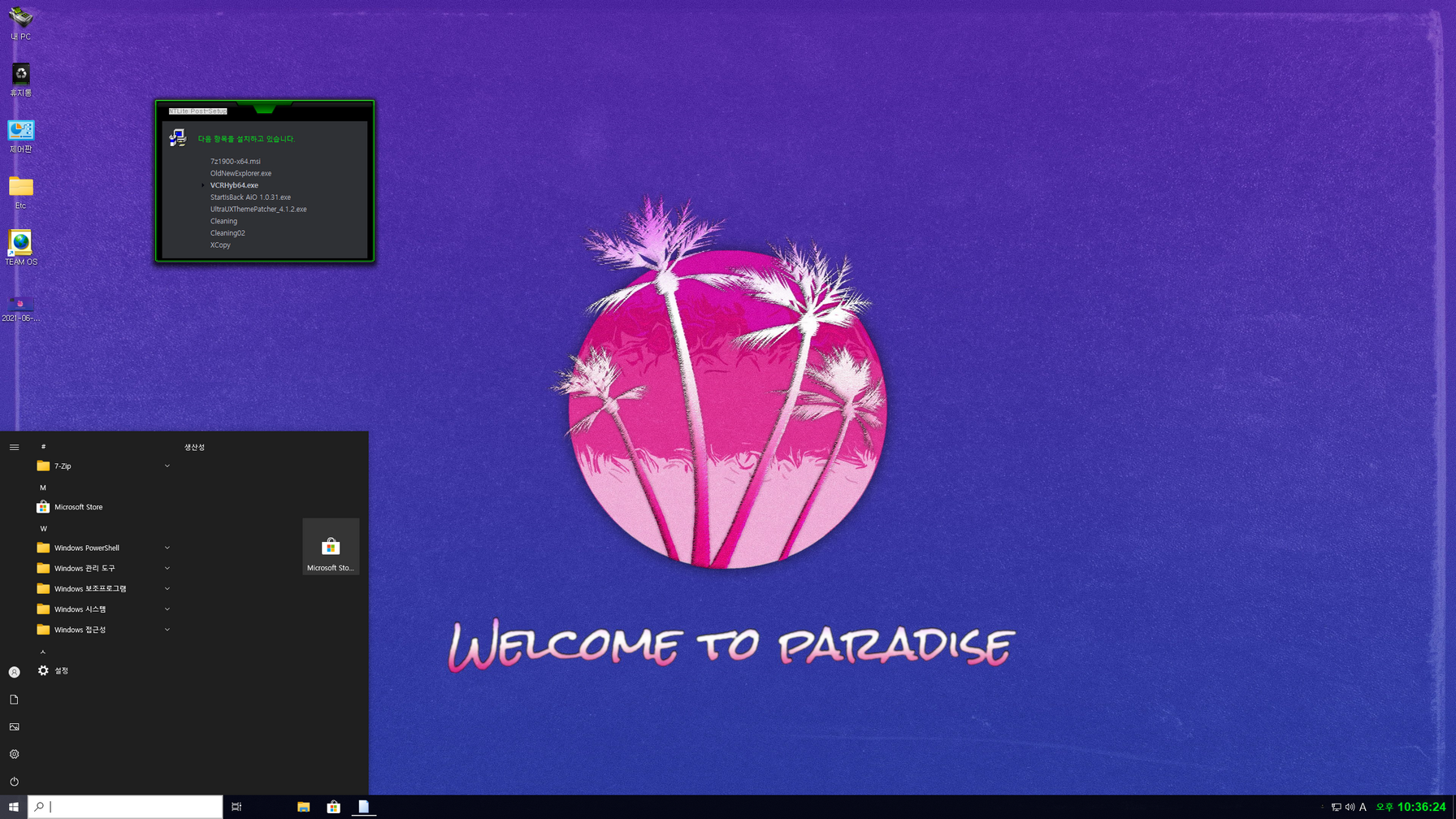 - Startisback / 7-Zip / Microsoft Visual C ++ 2015-2019 재배포 / OldNewExplorer / UltraUXThemePatcher 설치