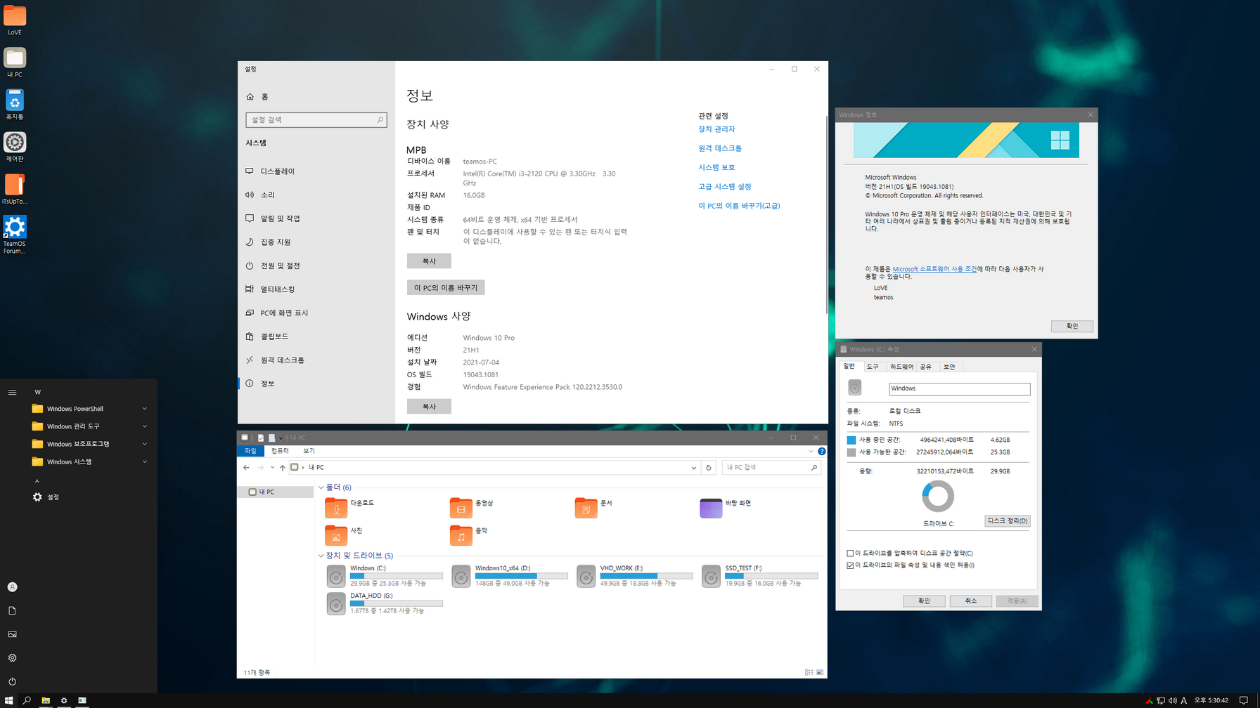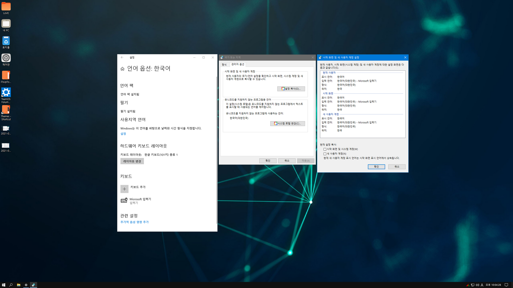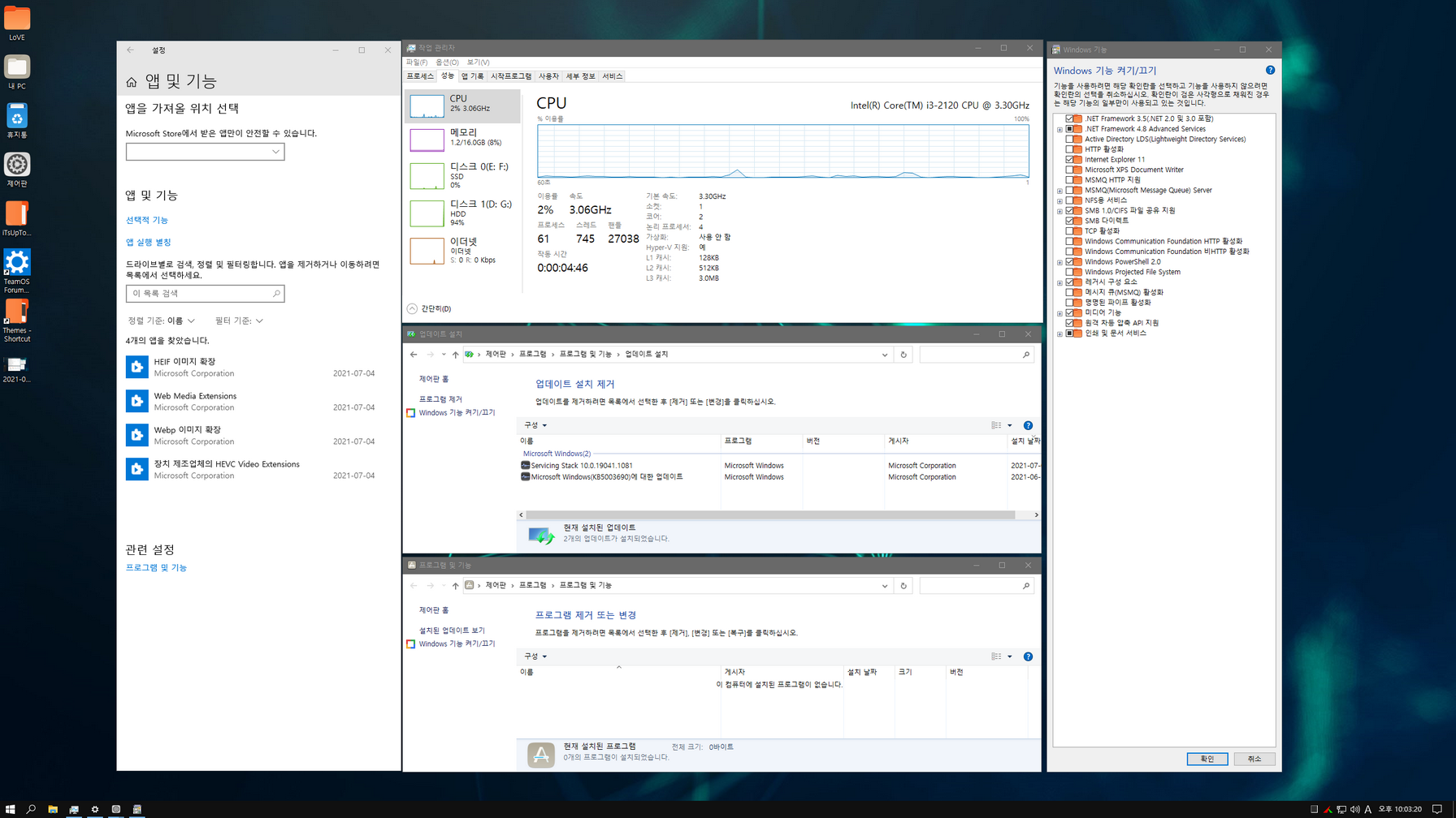 슈퍼라이트 윈도우가 제작자마다 트윅하는 장단점이 있어, 이렇게 머리디밀기 한글화하여도 미묘하게 정리한 소스가 맞지않아 중간에 작업을 포기하는 경우가 있습니다. 이번 Tc&Axe님 윈도우도 한글화는 쉽게 마무리했는데, 설치 후 시작메뉴와 알림 센터, 달력이 실행안되는 에러가 나와 하루종일 머리디밀기 했습니다. 마지막으로 한번만 더 덮어쓰기 신공으로 테스트...... ^^;