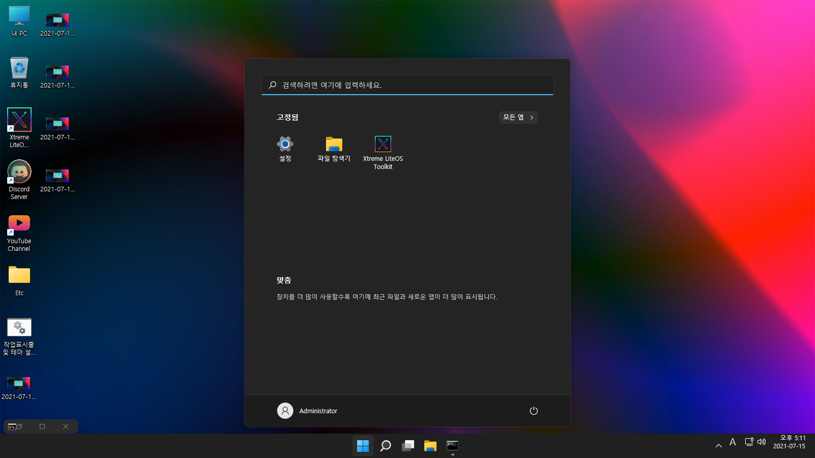 작업표시줄 및 테마 설정 다운로드