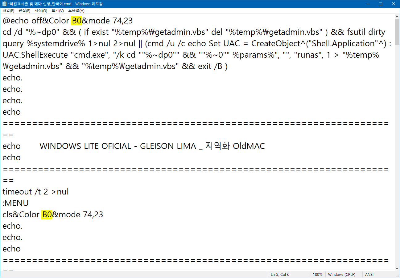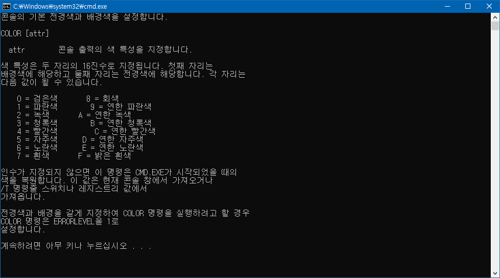 명령 창(콘솔) 전경색과 배경색 바꾸는 방법