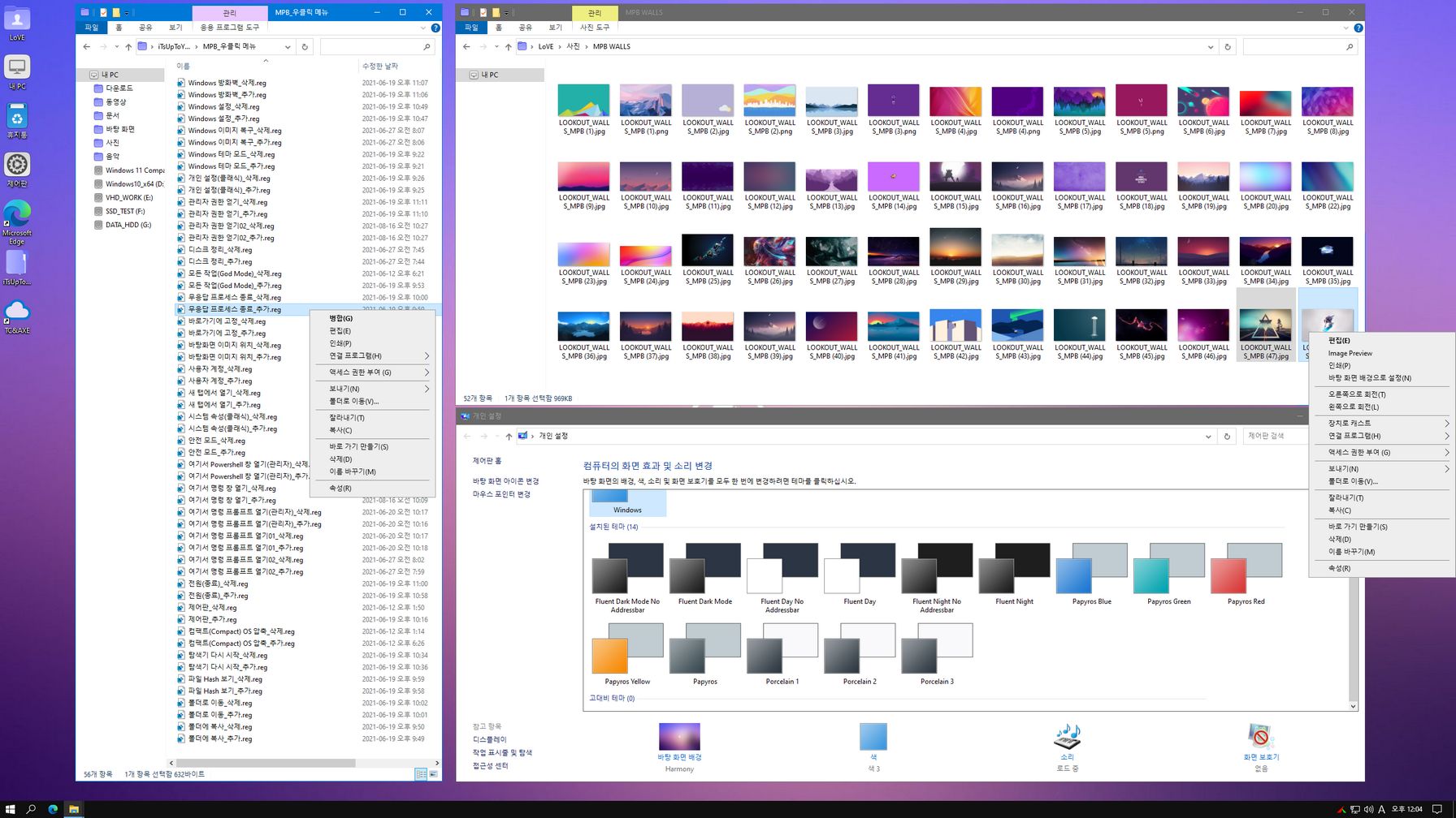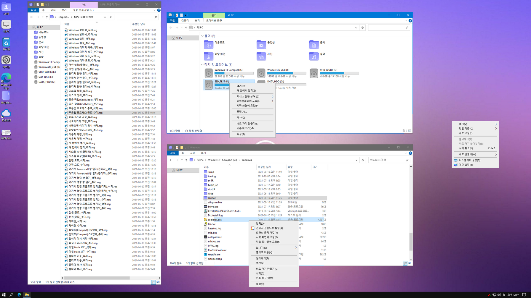 - 제작자 우클릭 메뉴 삭제(사용하실 분은 바탕화면 'iTsUpToYou' 폴더에서 추가)
