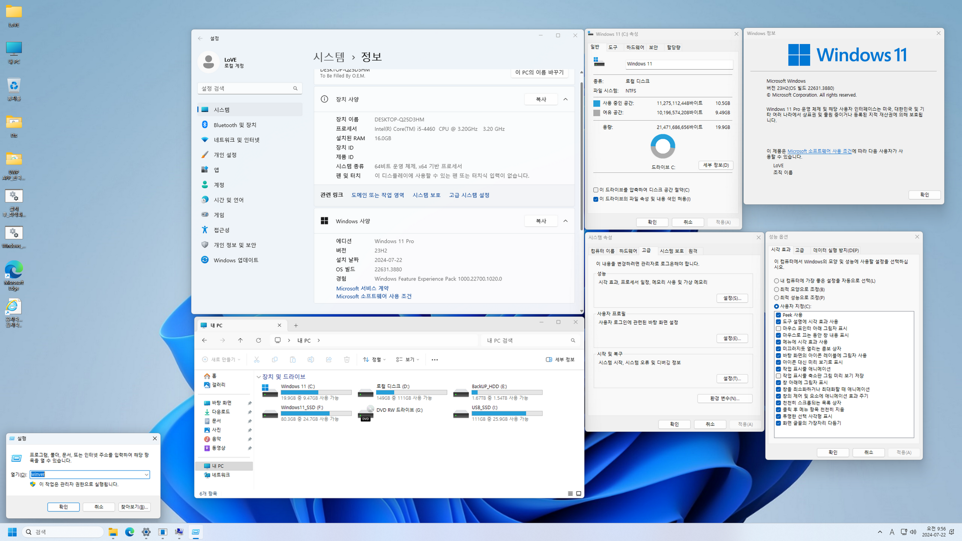 SanLex님 22631.3593 버전에 누적 업데이트 KB5040442(22631.3380)를 통합하여 한글화 작업을 마무리했습니다.