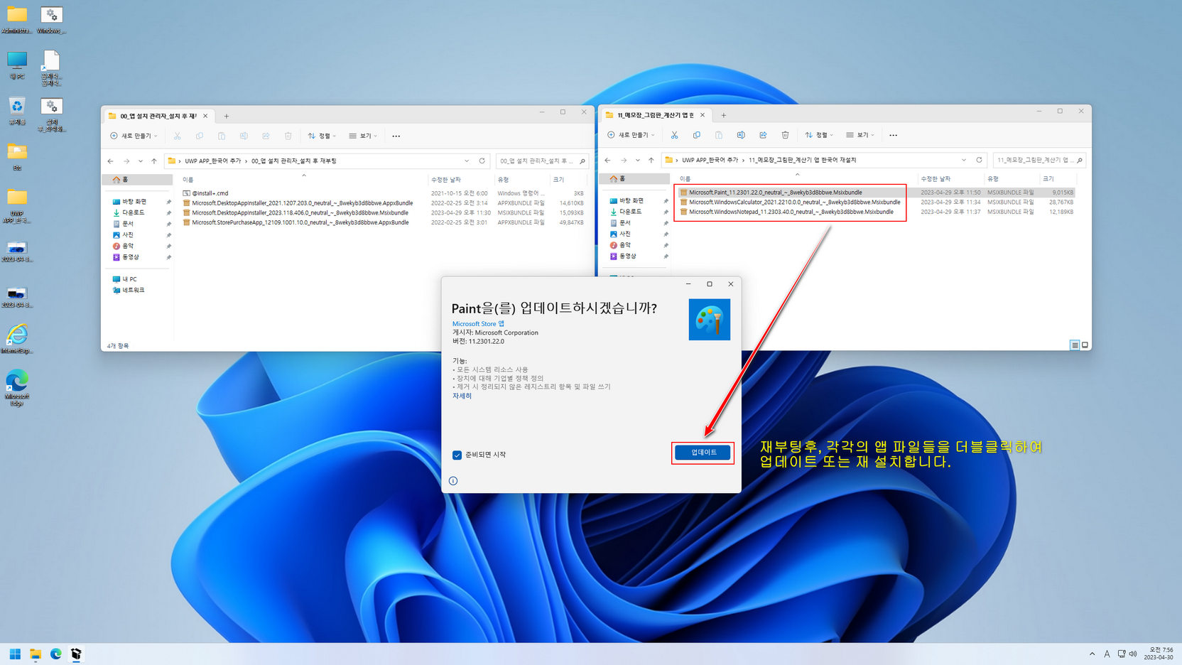 - 계산기 / 그림판 / 메모판 앱관련 한국어 추가 자료 정리(바탕화면 'UWP APP_한국어 추가' 폴더)