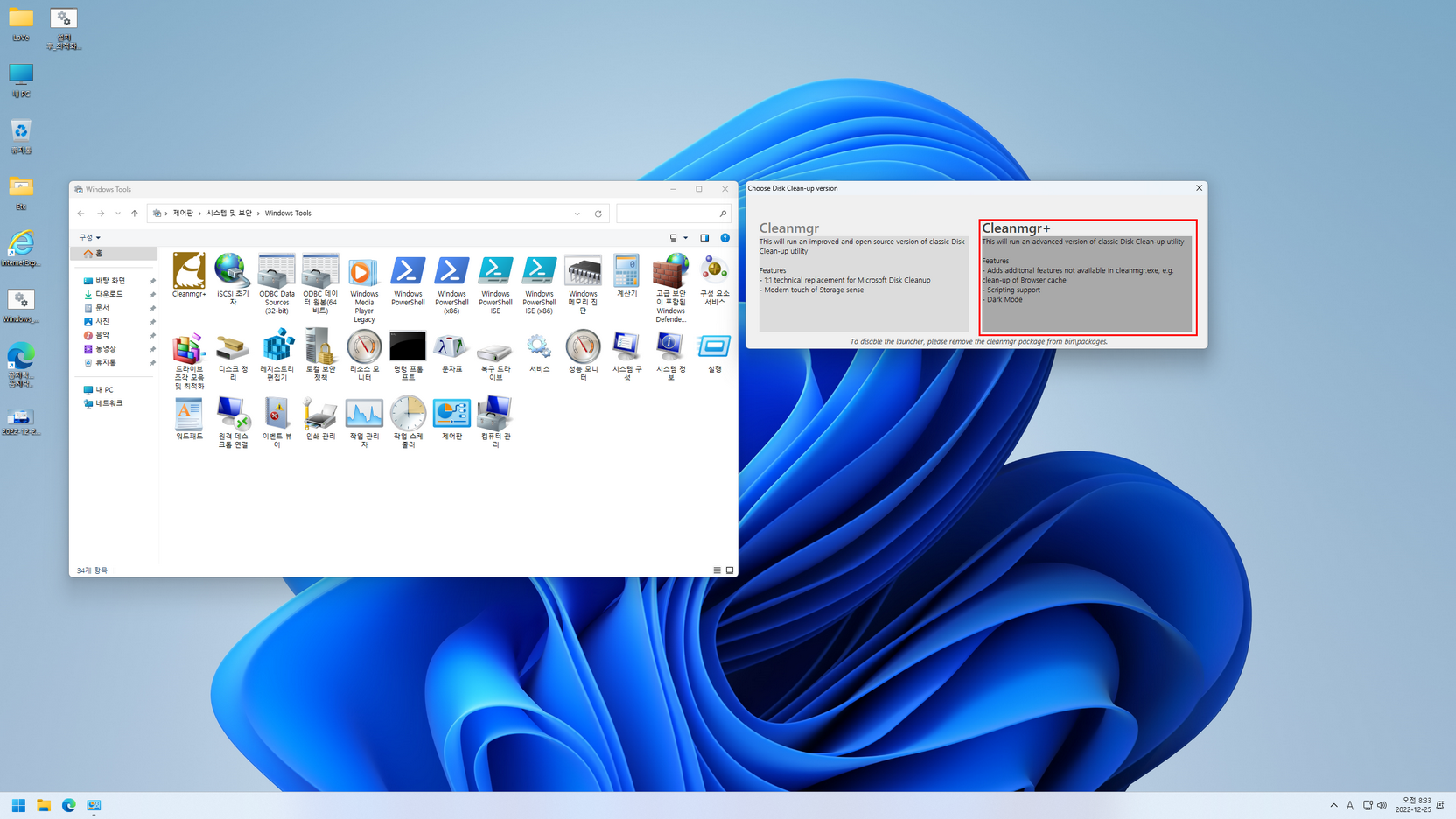 Microsoft DirectX 9 추가- Cleanmgr+(디스크 정리) 프로그램 추가(시작 메뉴 → Windows Tools)