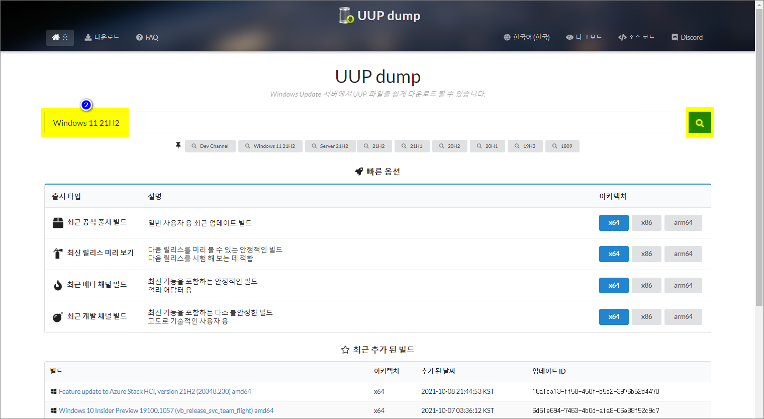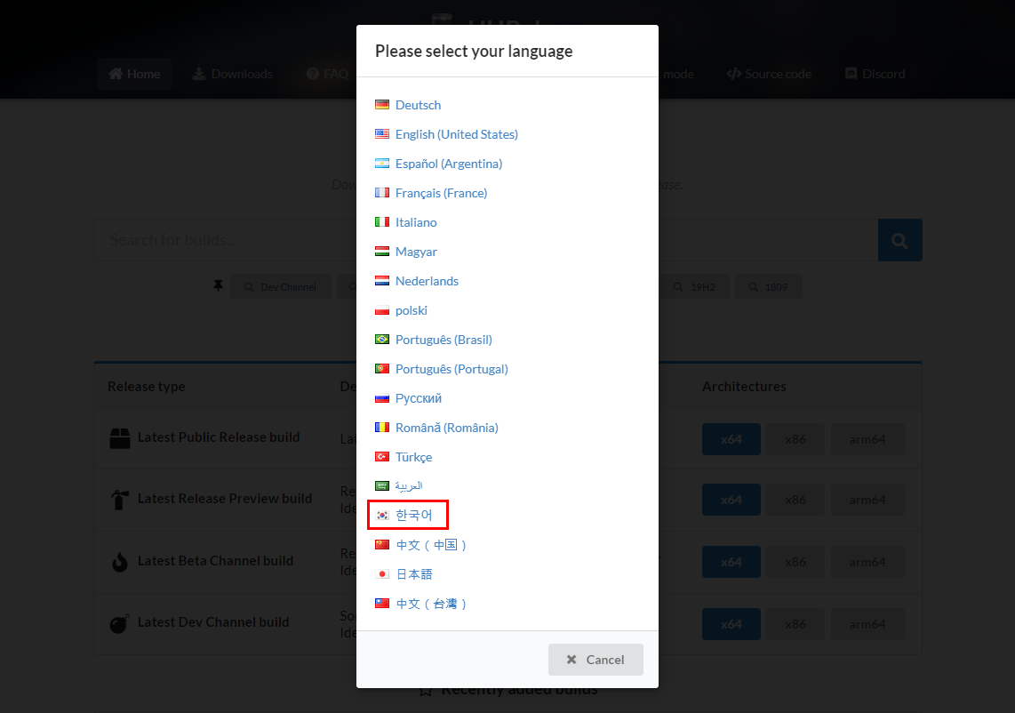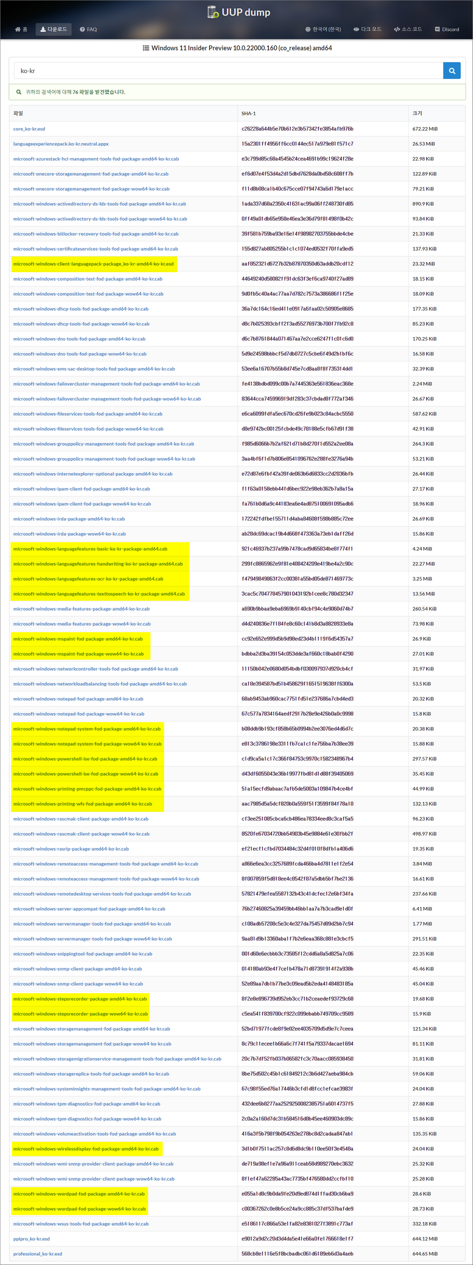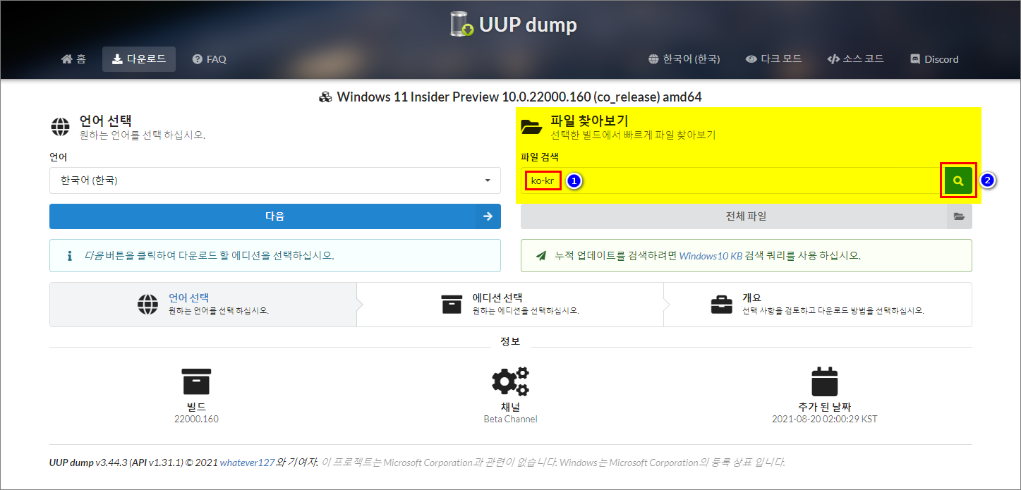 UUP DUMP 에서 Windows 11 한국어 언어팩 및 기능 언어팩 다운로드 방법