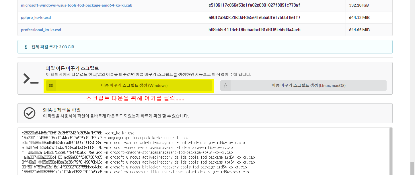 하지만 다운로드되는 파일명들이 목록명으로 저장이 안되기때문에 나열된 목록의 맨 마지막 부분에 있는 '파일 이름 바꾸기 스크립트'도 함께 다운로드합니다.
