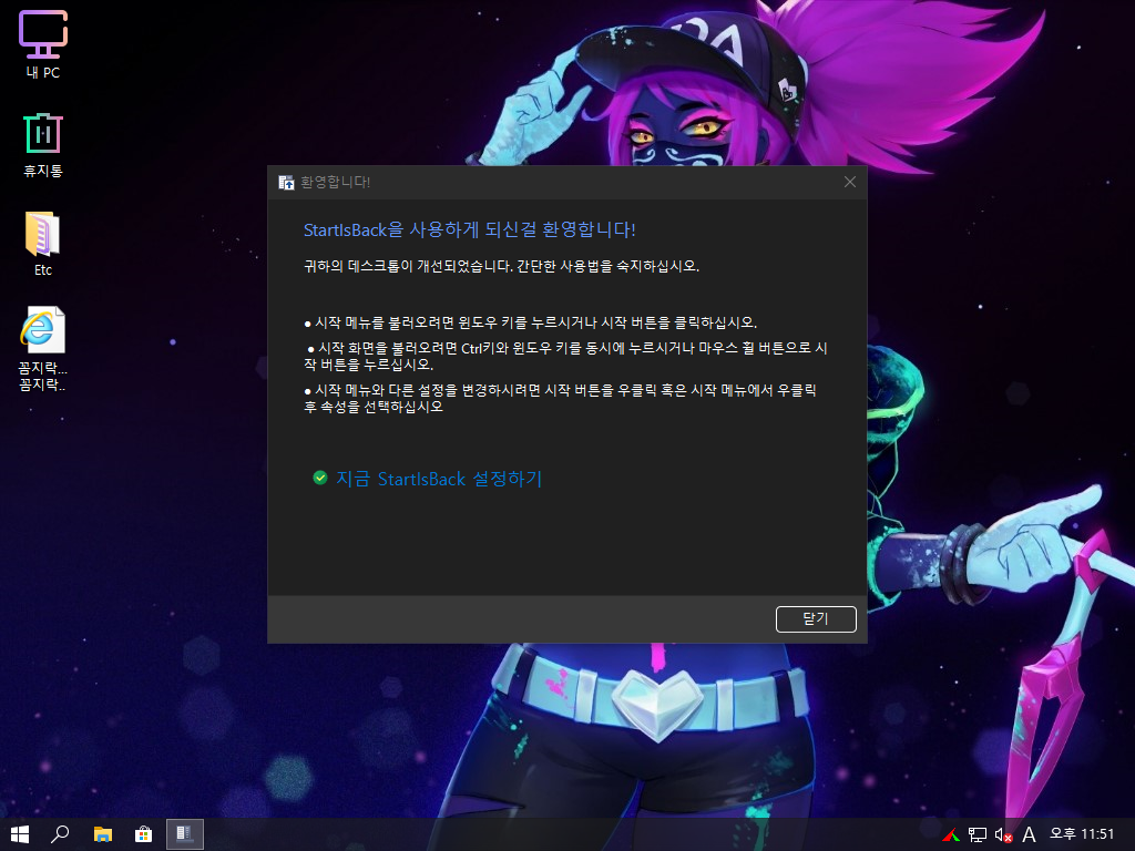 - 시작메뉴 추가(StartisBack++)