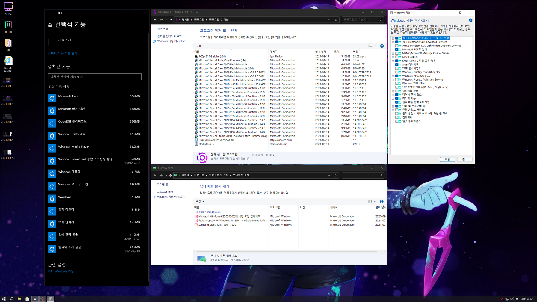 - 닷넷 3.5 / SMB 1.0 활성화
