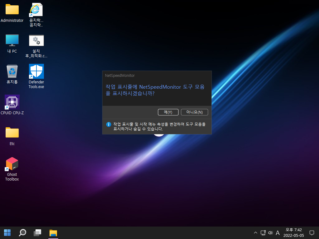 총 6 가지 에디션으로 *************.esd 이미지로 마무리합니다. 첫 바탕화면 진입 후에 제작자관련 각종 트윅작업이 이루어지고, 마무리가 되면 재부팅됩니다.