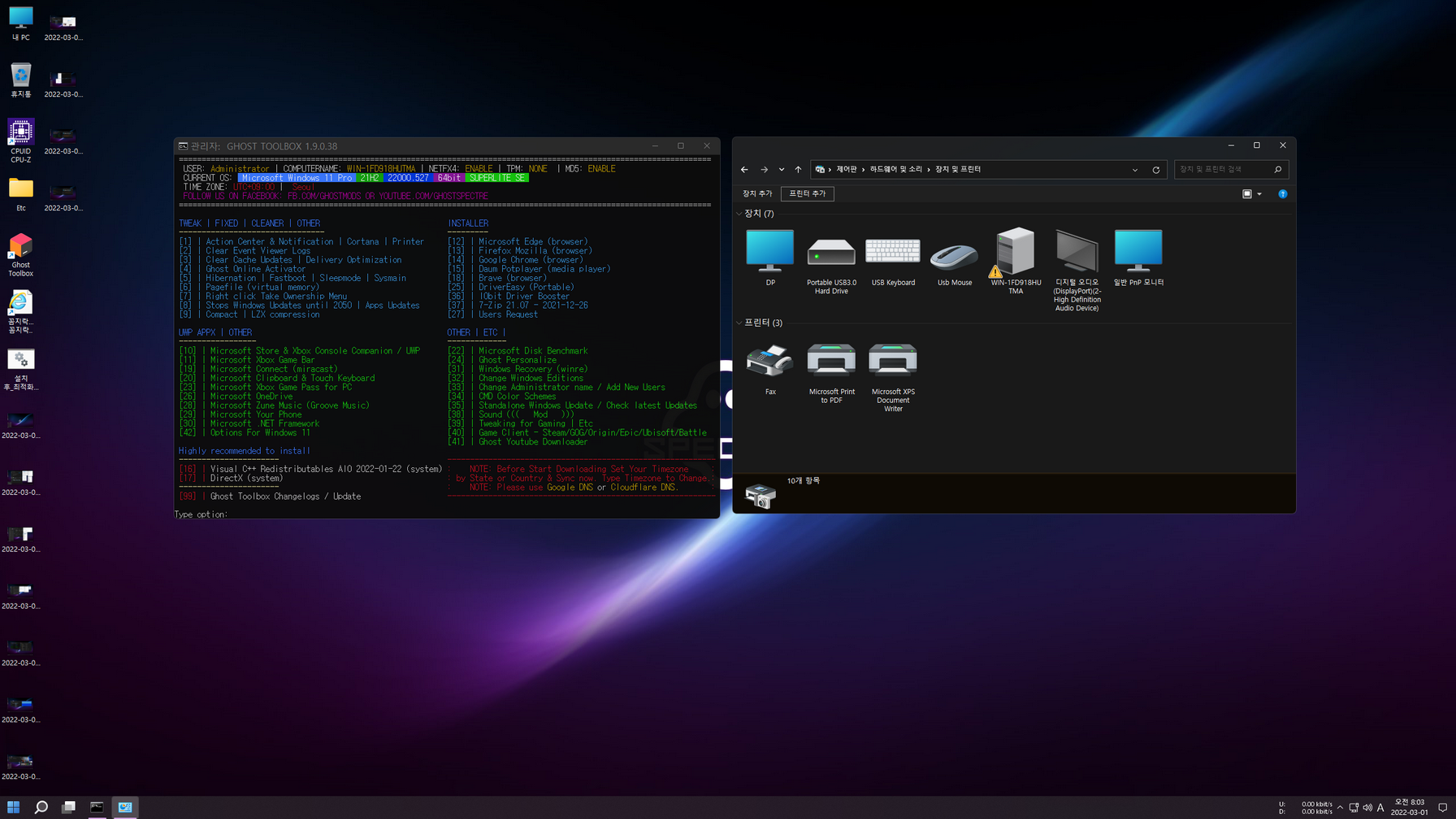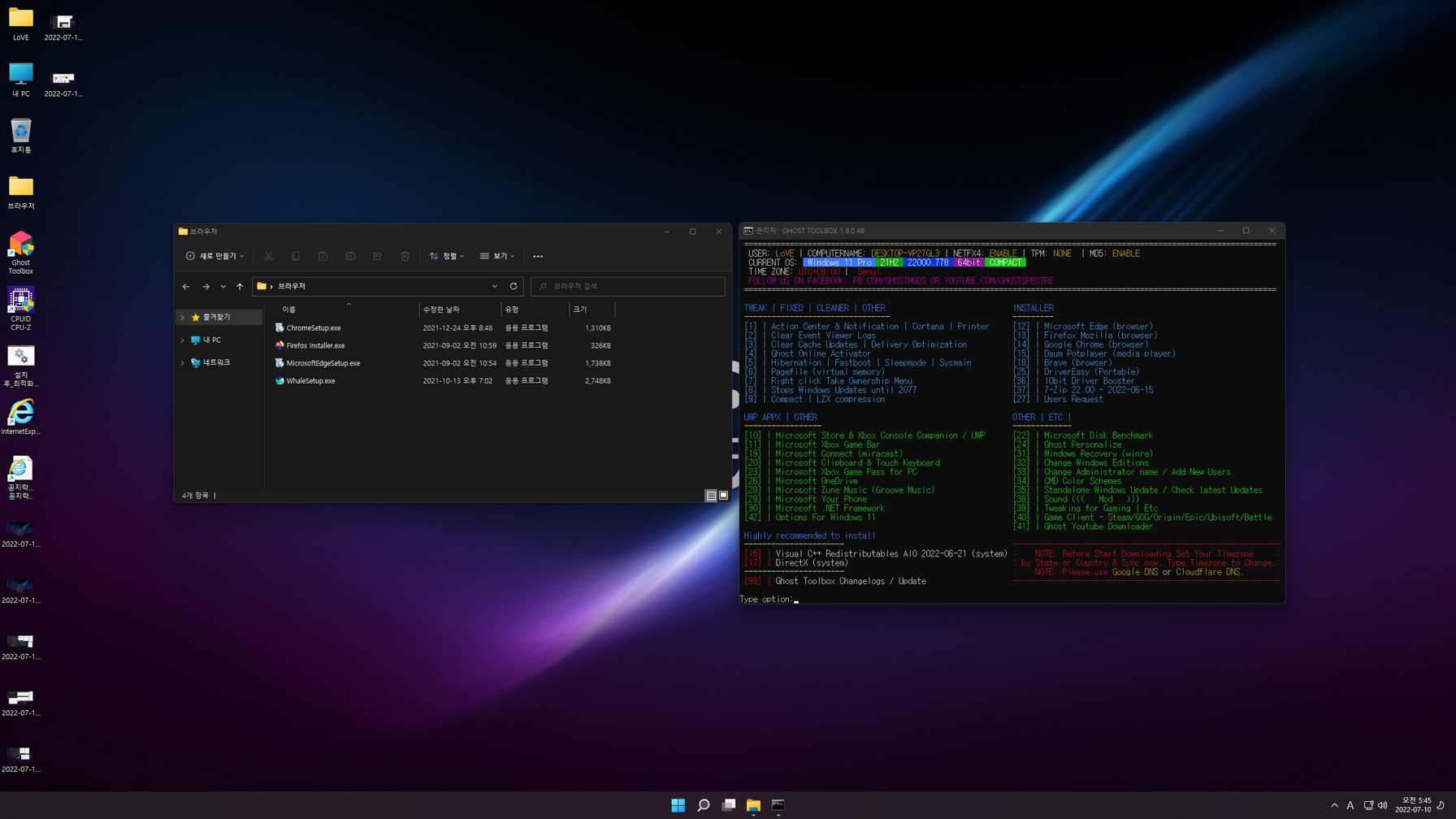 - SUPERLITE 에디션 : 게이머와 스트리밍에 적합한 에디션(레지스트리, 서비스, 불필요한 구성 요소 조정, Windows 검색 끄기)