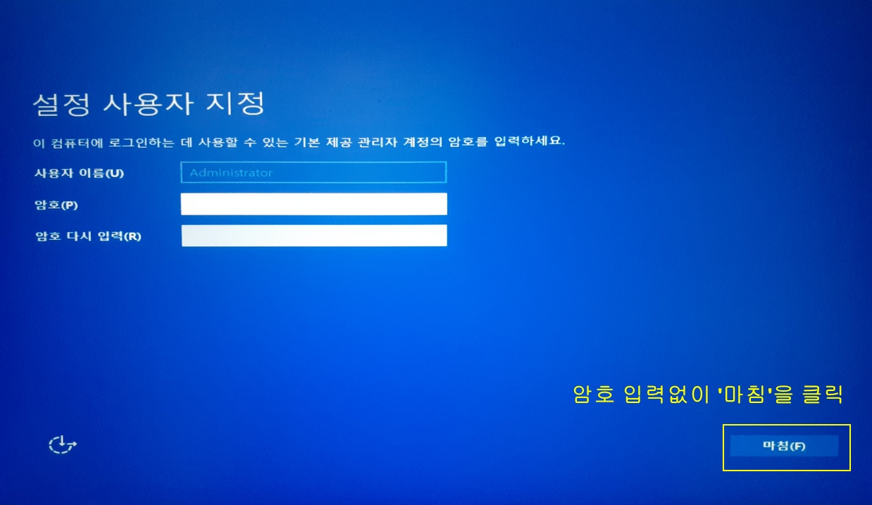 3~6번 에디션 ISO(USB) 설치 시 'Administrator' 계정 암호없이 설치하는 방법