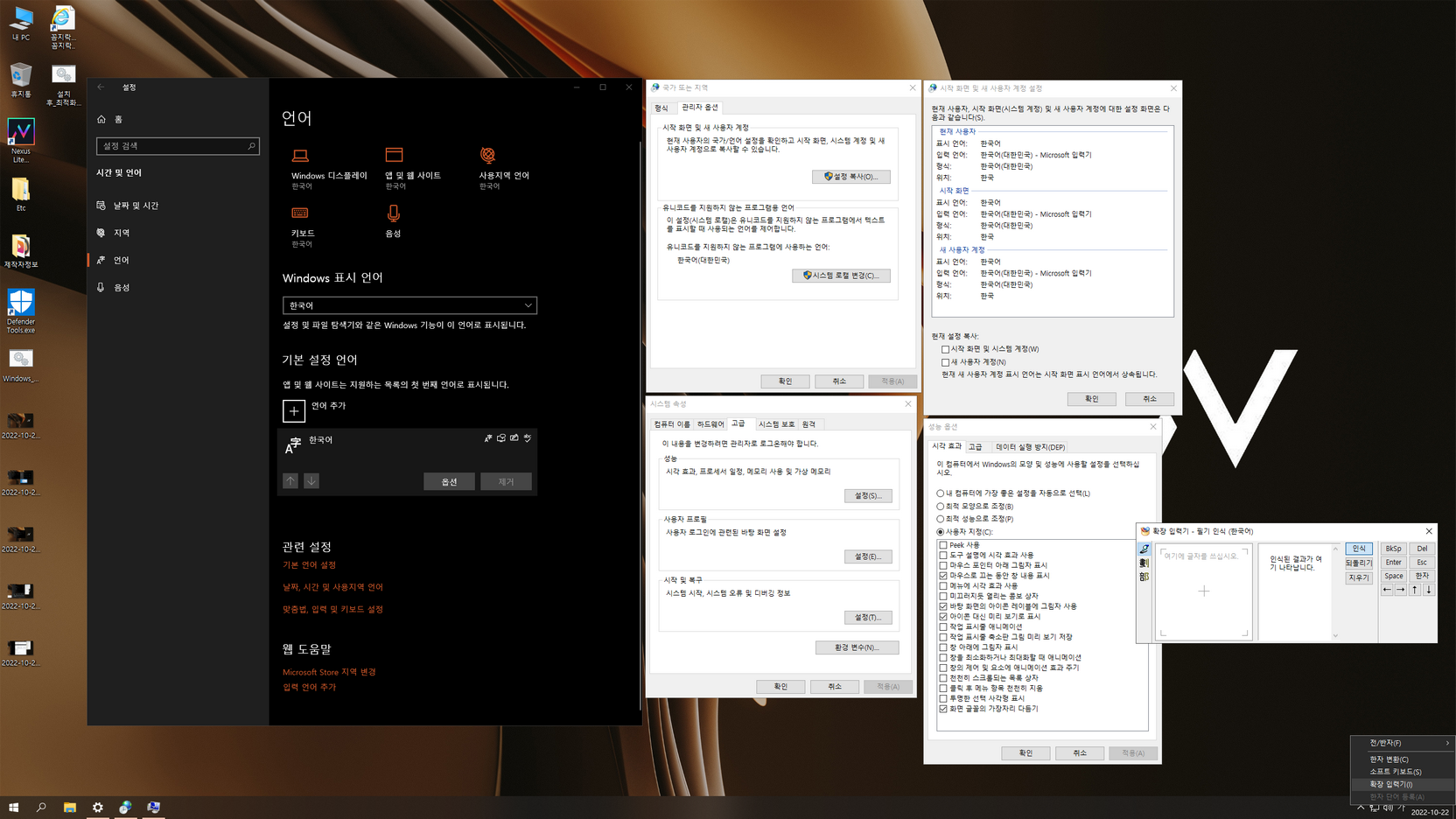 무봉인 윈도우라 오프라인 지역화 작업으로 글꼴 설정을 마무리할 수 없었습니다. 그래서 첫 바탕화면 진입 후에 바로 배치파일이 실행되고, 10초 후에 재부팅이 됩니다.