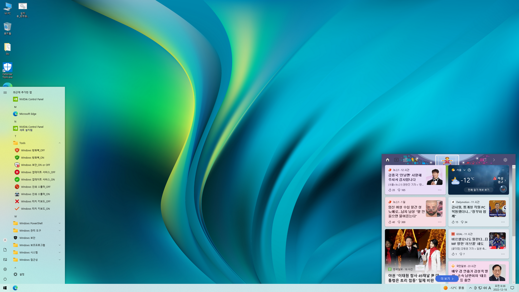 개인적으로 선호하는 G.M.A님의 윈도우 트윅은 적당한 기능 삭제와 안정성에 있습니다. 그리고 작업표시줄에 '뉴스 및 관심사'를 사용하기를 원하는 분들이 있어서 다시 활성화했습니다.
