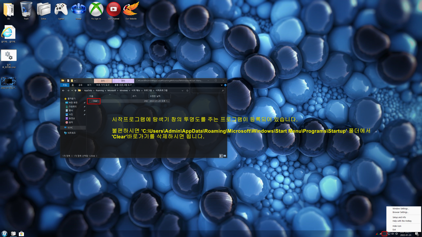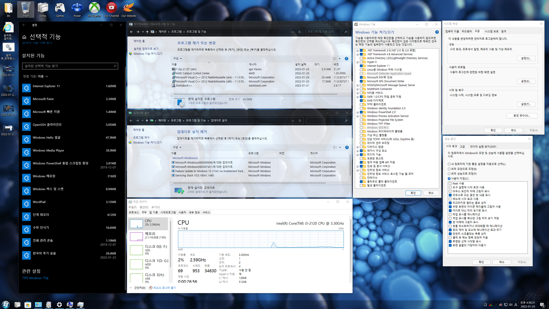 디펜더 사용과 누적 업데이트가 가능하며, Sysprep 작업으로 마무리된 반무봉인 윈도우입니다. 또 윈도우 투명도가 시작프로그램으로 등록되어 있습니다.
