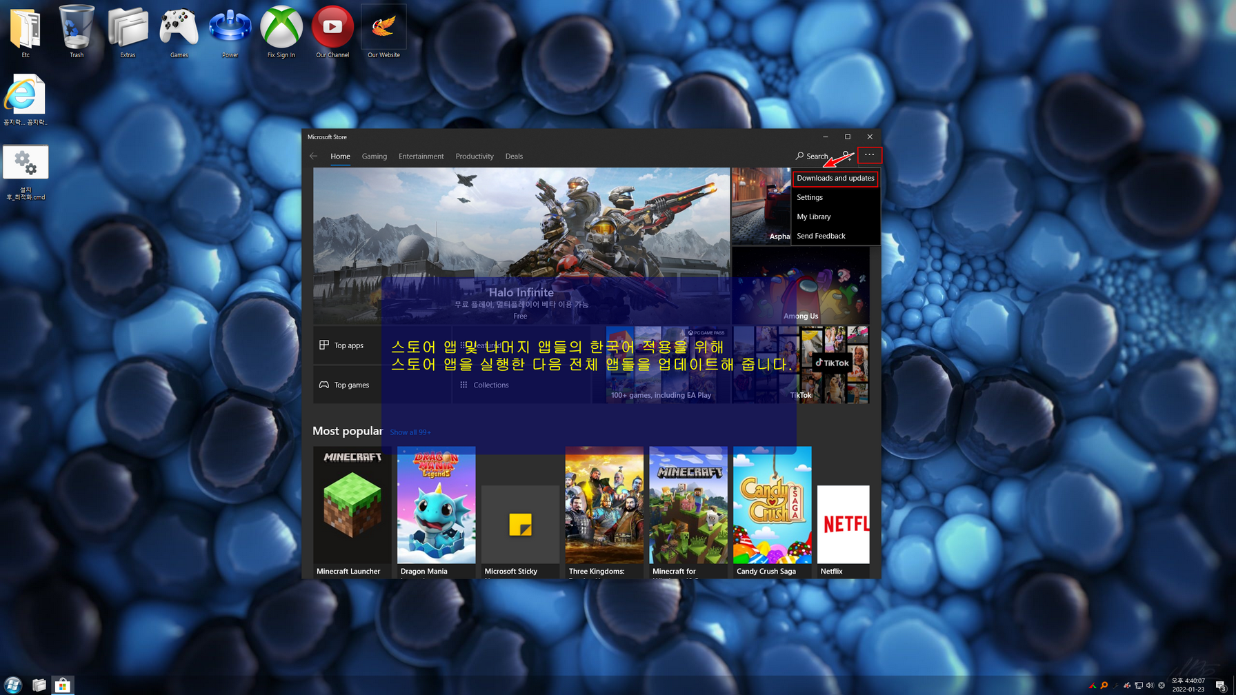 스토어 앱 / UWP 앱 / 시스템 앱 한국어 적용