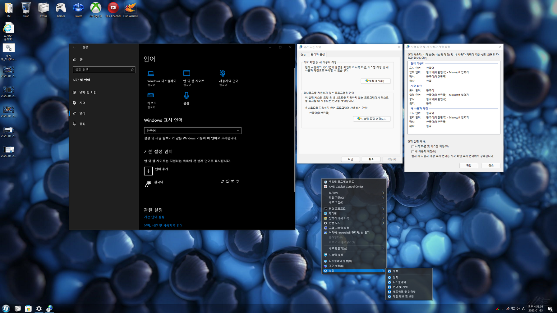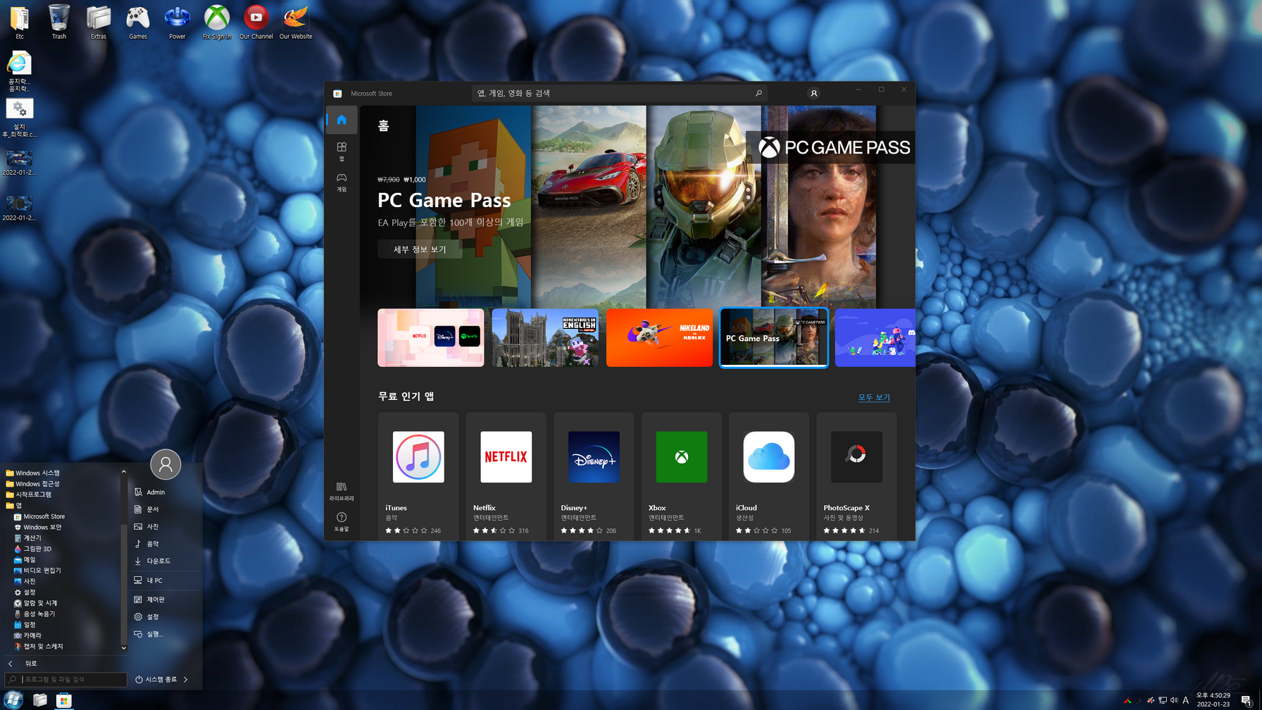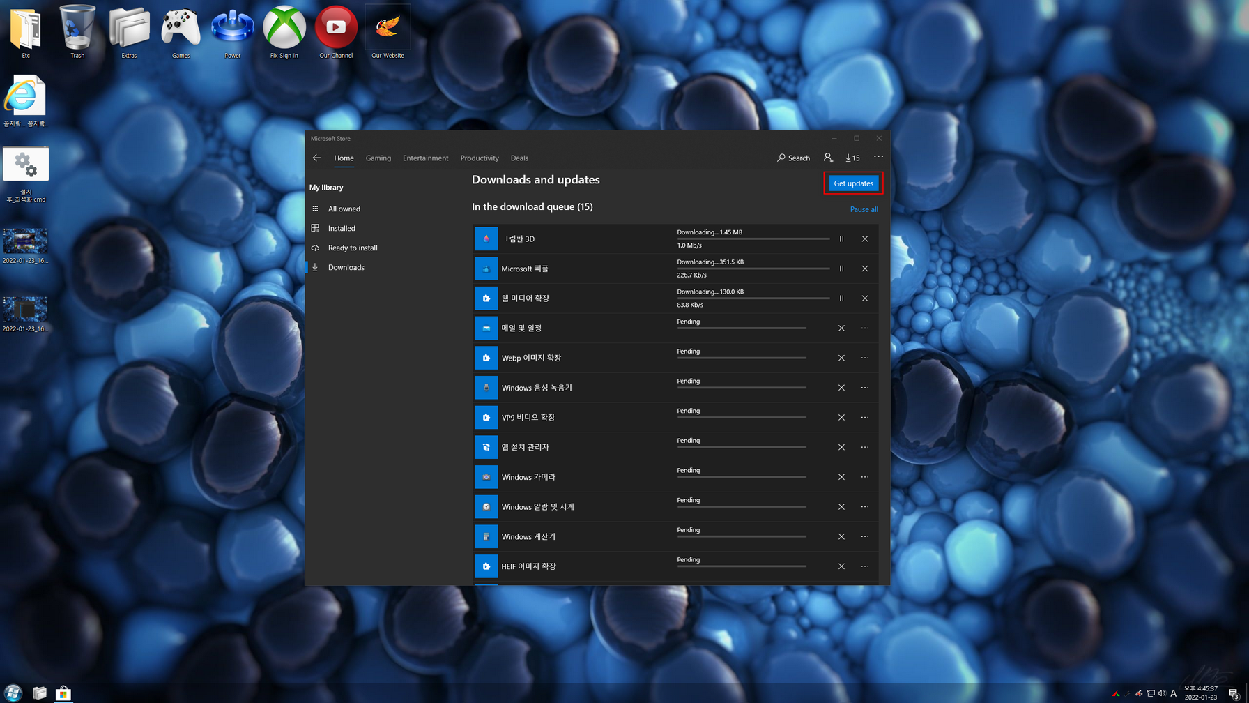 설치는 사용자 계정(오프라인)과 Admin(Administrator) 계정으로 설치할 수 있으며, 용량문제로 *****************.esd 이미지로 마무리합니다. 시스템 일부 메뉴/스토어 앱/시스템 앱들의 한국어 적용하기 위해 스토어 앱을 실행한 다음, 모든 앱을 업데이트해 주어야합니다.