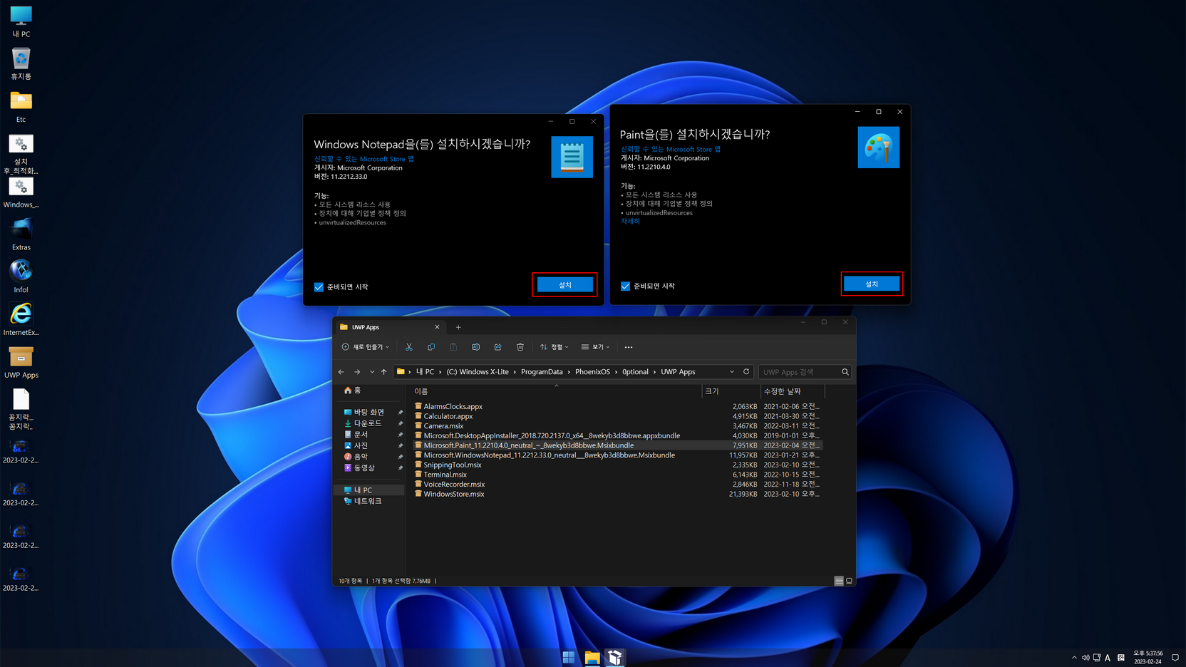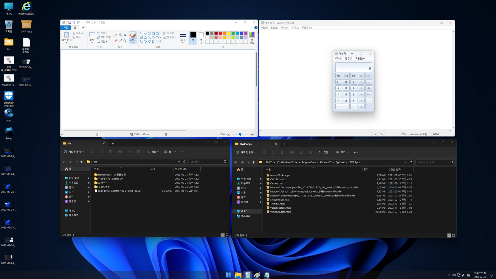 - DesktopAppInstaller / 그림판 / 메모장 설치 앱 추가(바탕화면 'UWP Apps' 폴더에)