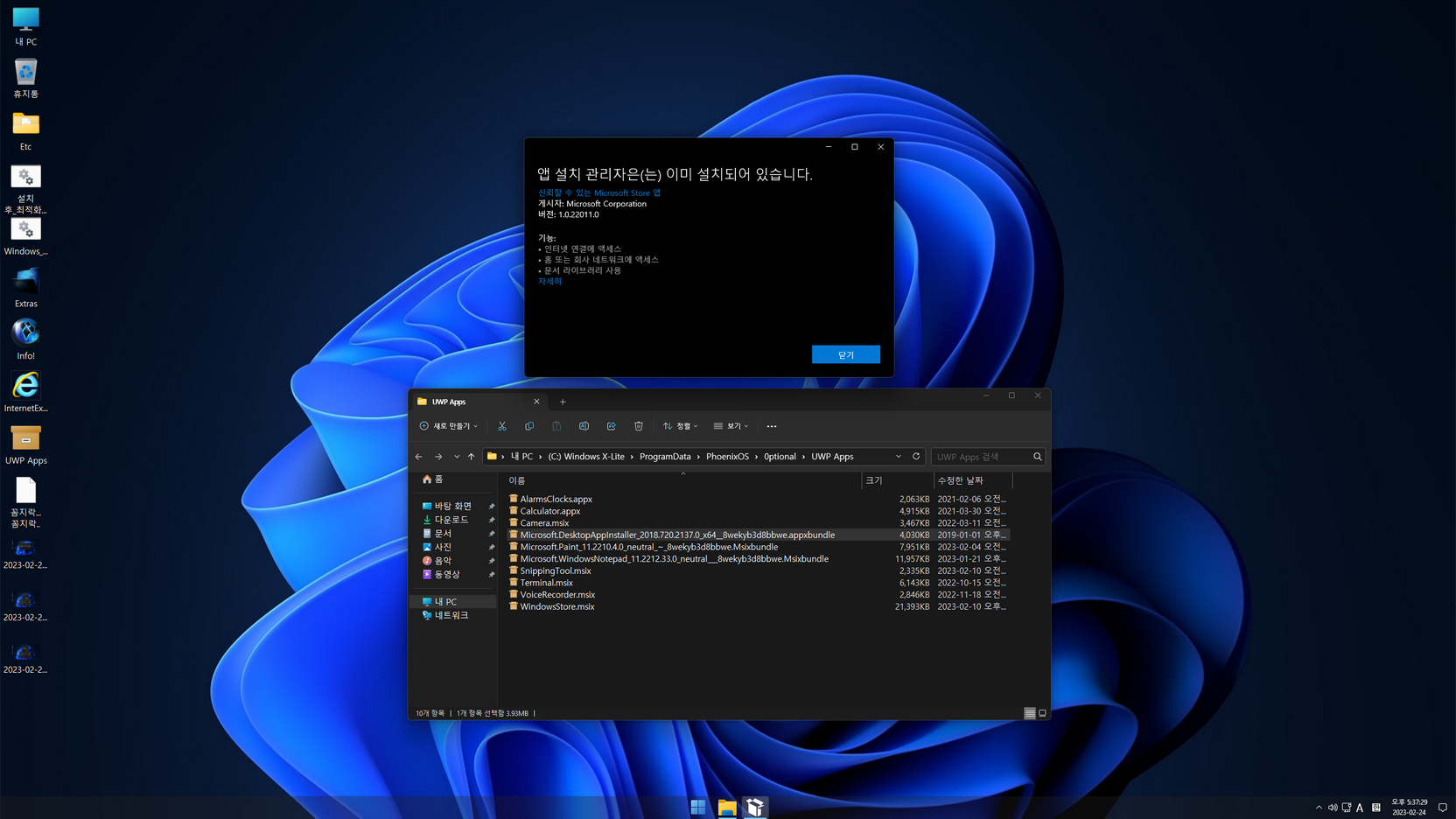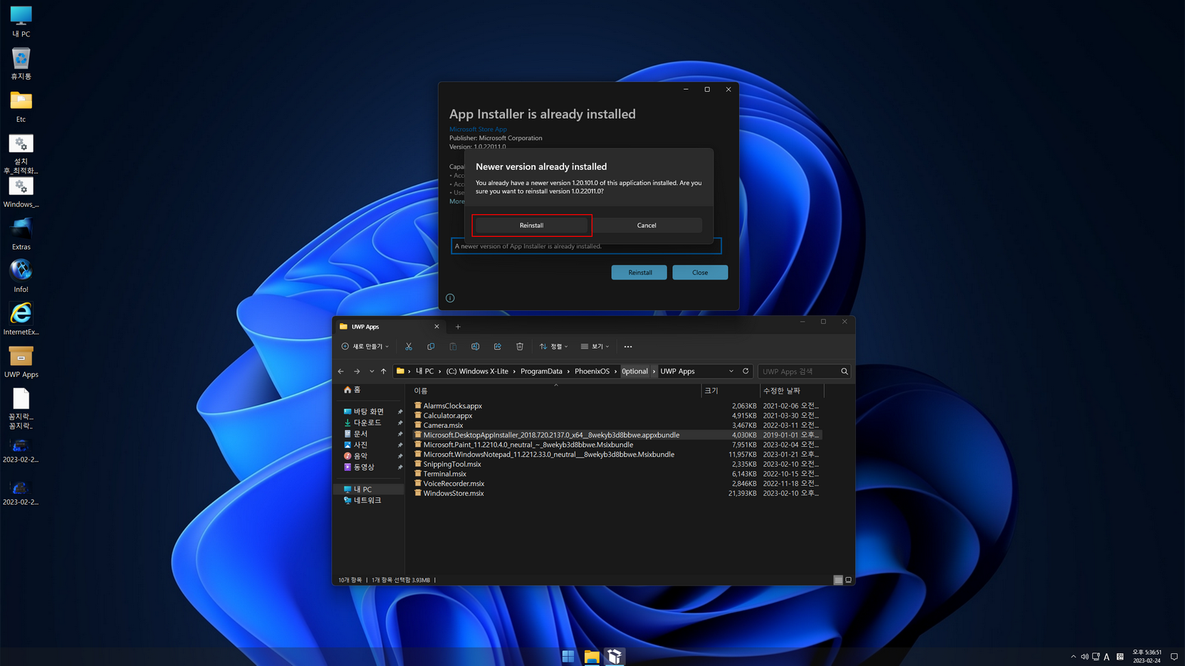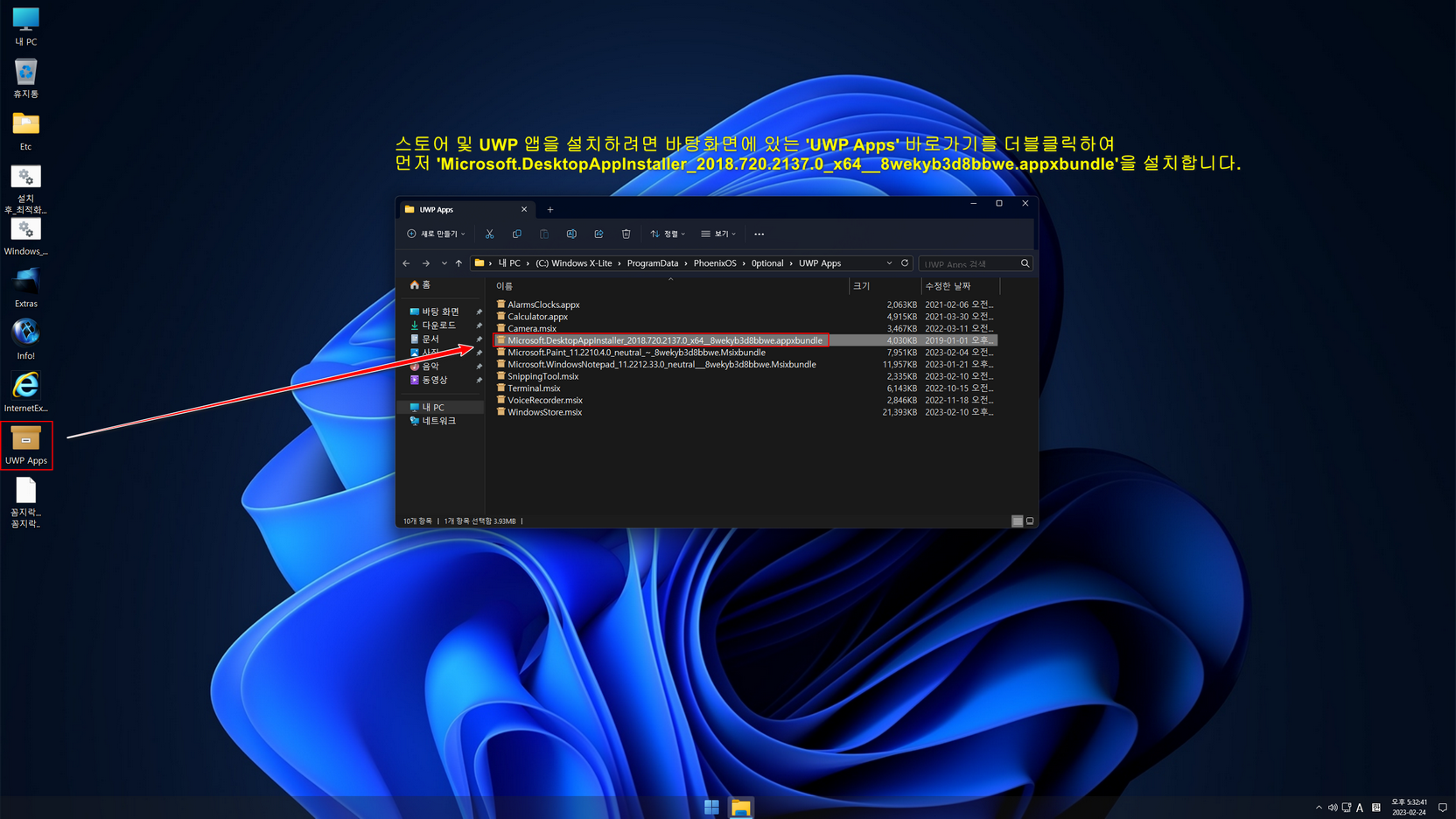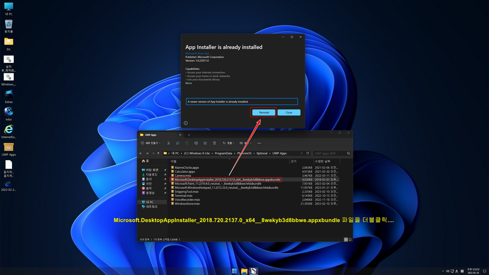 - 바탕화면 → 'UWP Apps' 바로가기 더블클릭 → 'Desktop App Installer'를 더블클릭하여 설치