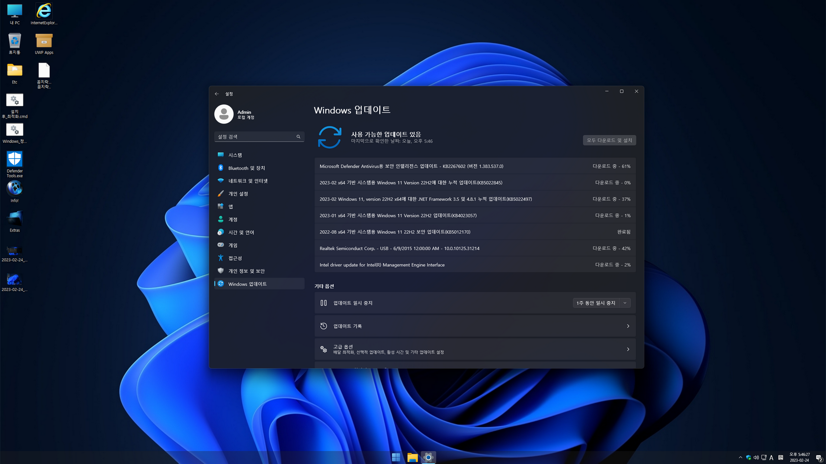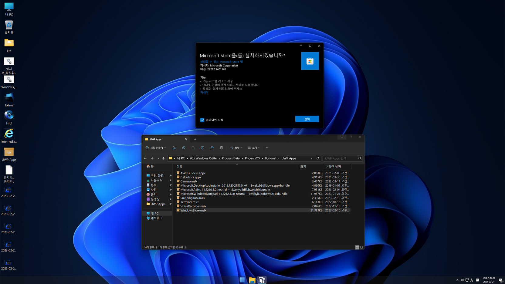 - 스토어 앱 및 각종 UWP 앱 최신 버전으로 업데이트(바탕화면 'UWP Apps' 폴더에서 설치)