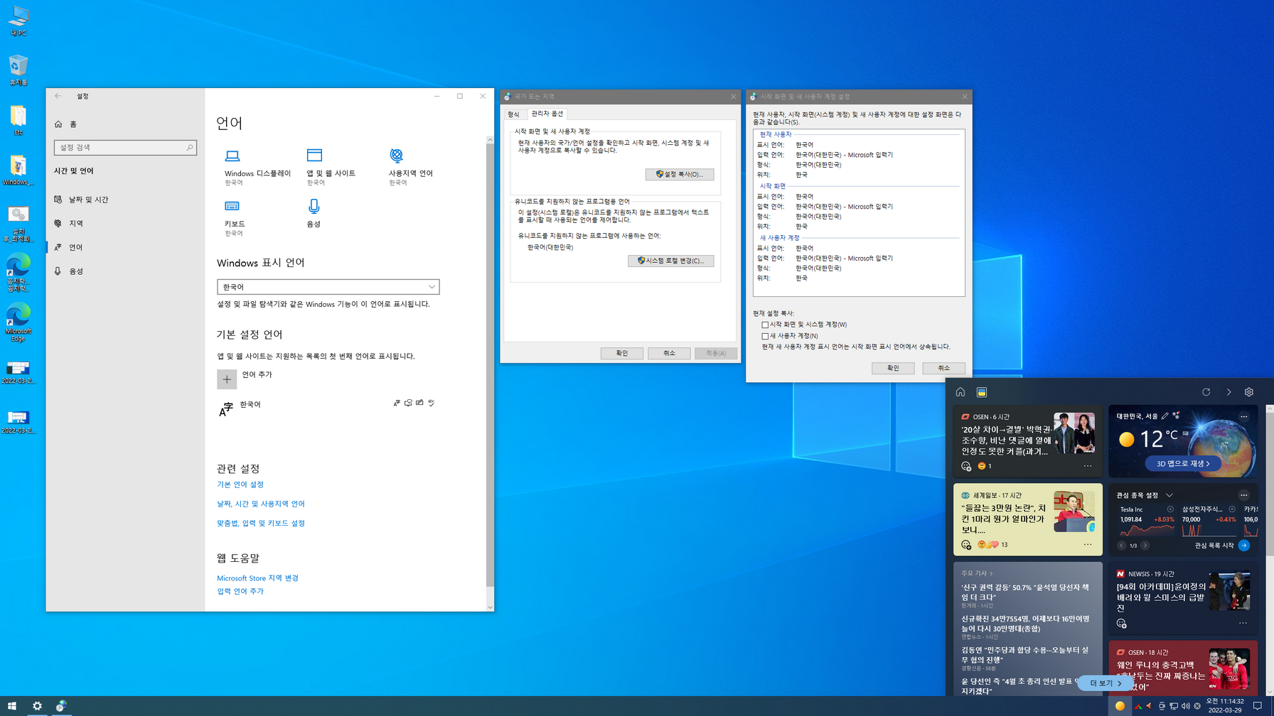 - 작업 표시줄 '뉴스와 관심사' 활성화