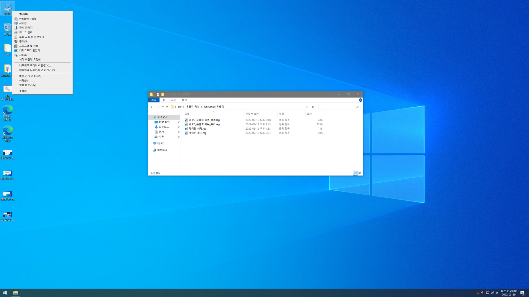 - 우클릭 메뉴 추가 및 정리