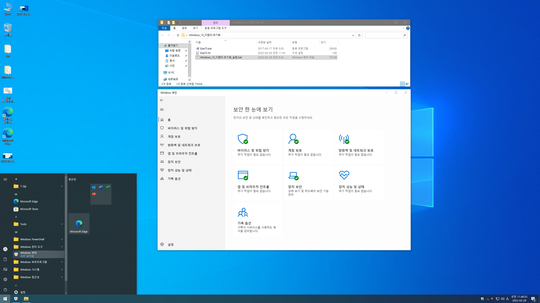 설치는 Administrator 계정과 사용자 계정으로 설치되며, 용량문제로 *****************.esd 이미지로 마무리합니다. 디펜더 활성화 아래 캡처 이미지를 참고하시면 됩니다.