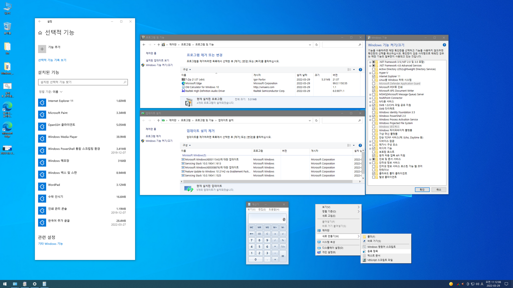 - 7-zip / 클래식 계산기 추가