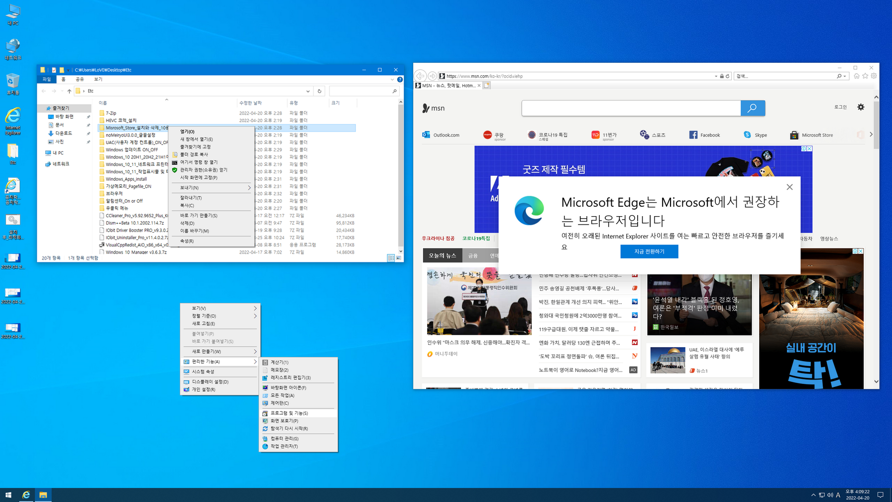 - 우클릭 메뉴 추가(바탕화면에 'Etc → 우클릭 메뉴_제작자' 폴더에서 삭제 가능)