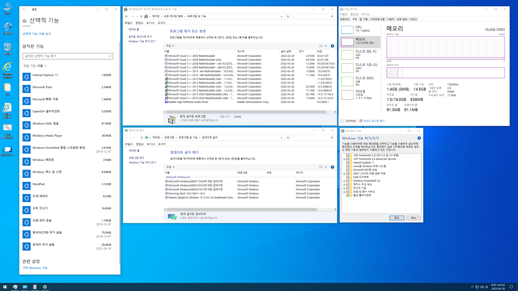 - 닷넷 3.5 / SMB1.0 활성화