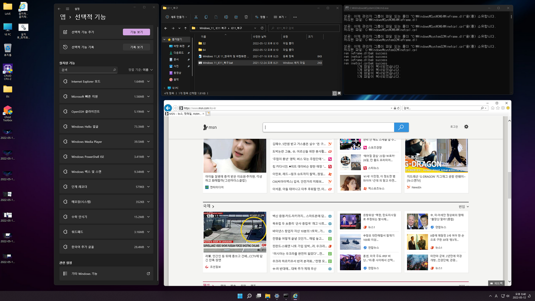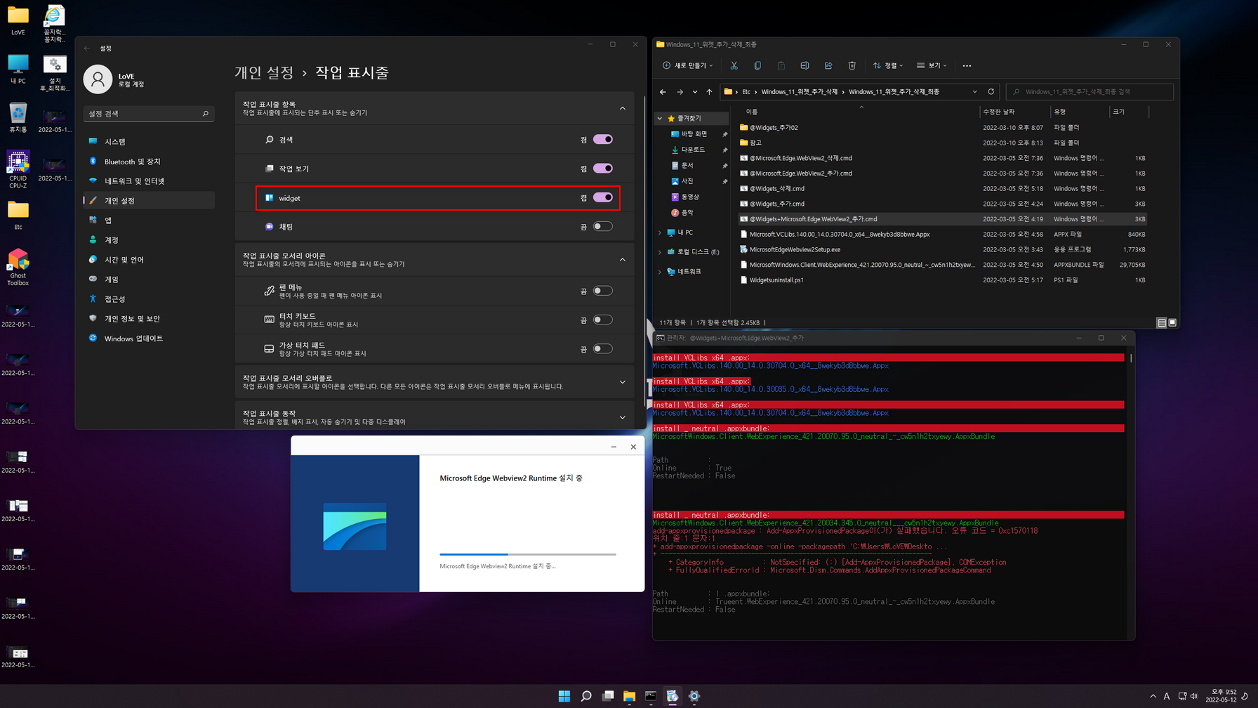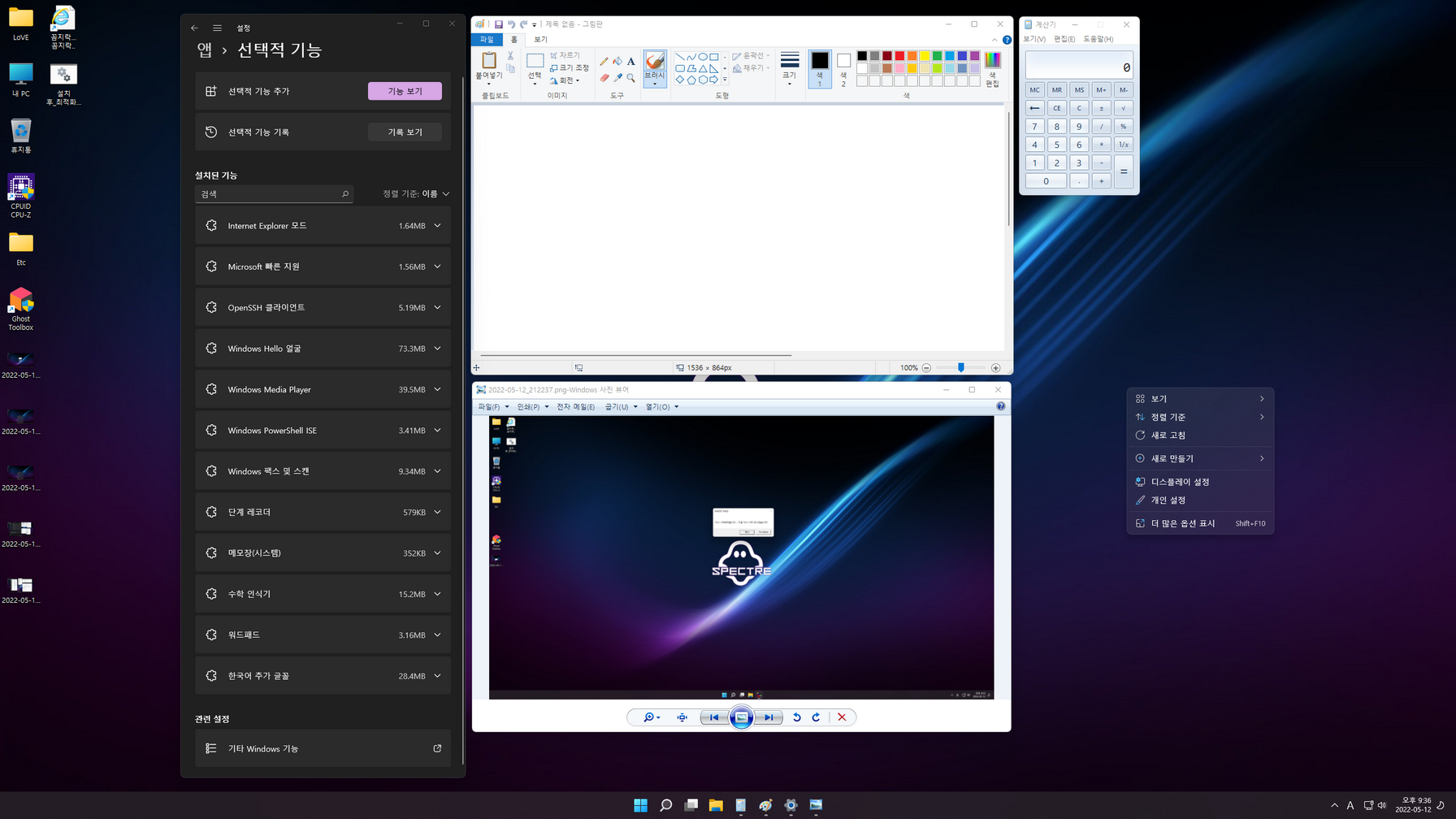 총 4 가지 에디션으로 *************.esd 이미지로 마무리합니다. 첫 바탕화면 진입 후에 제작자관련 각종 트윅작업이 이루어지고, 마무리가 되면 재부팅됩니다.