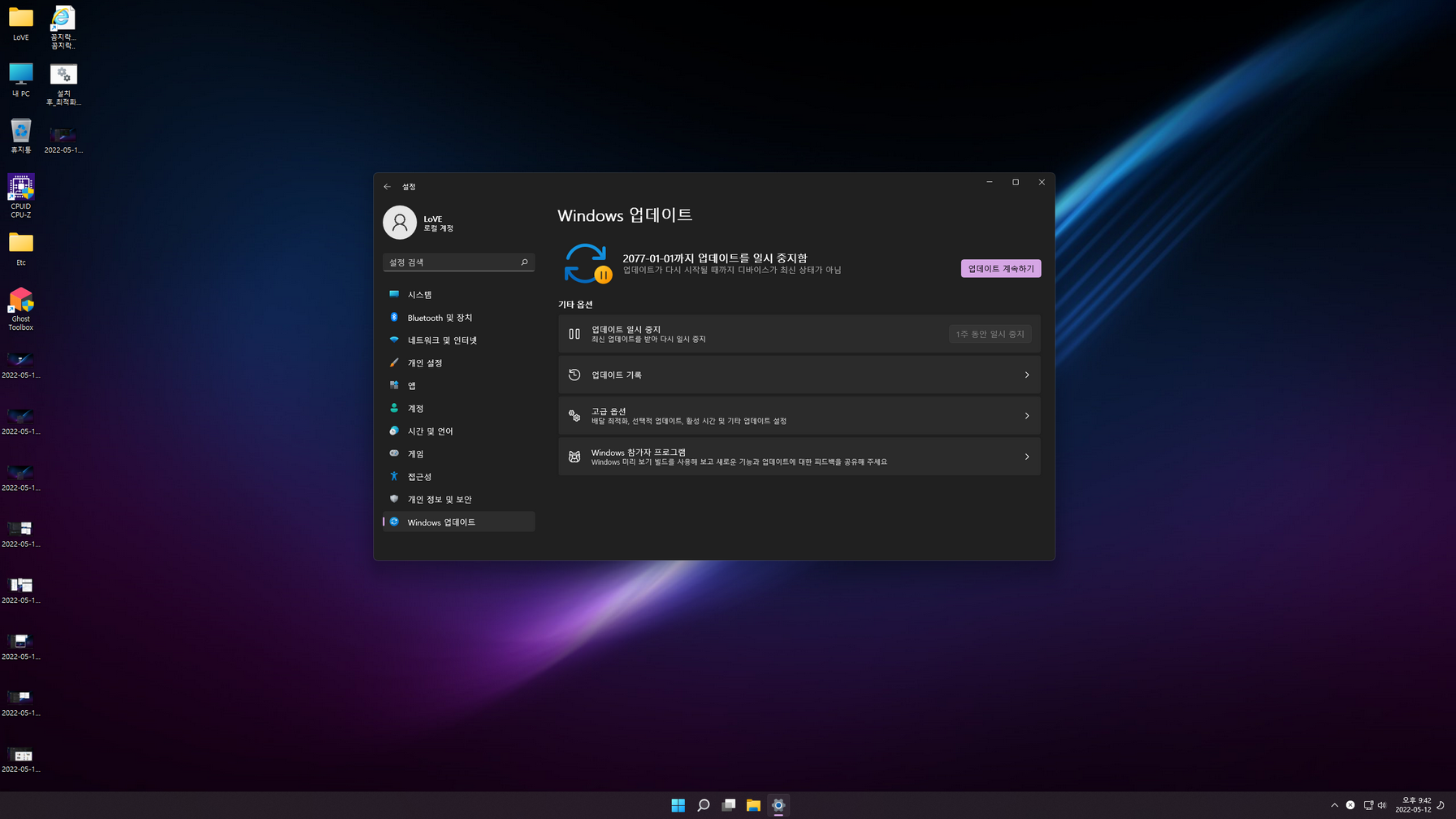 - 윈도우 업데이트 2077년까지 일지 중지