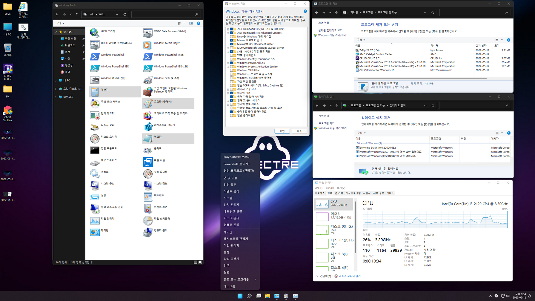 WinX 메뉴 추가(디펜더 켜기_끄기 등)- WinSxS 폴더 정리
