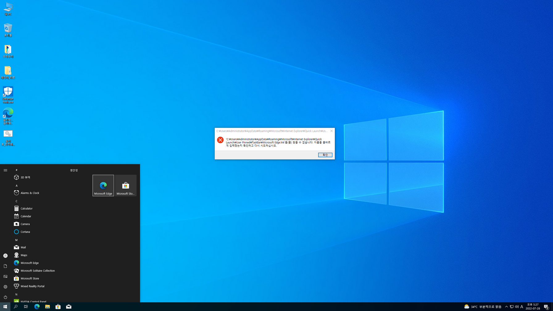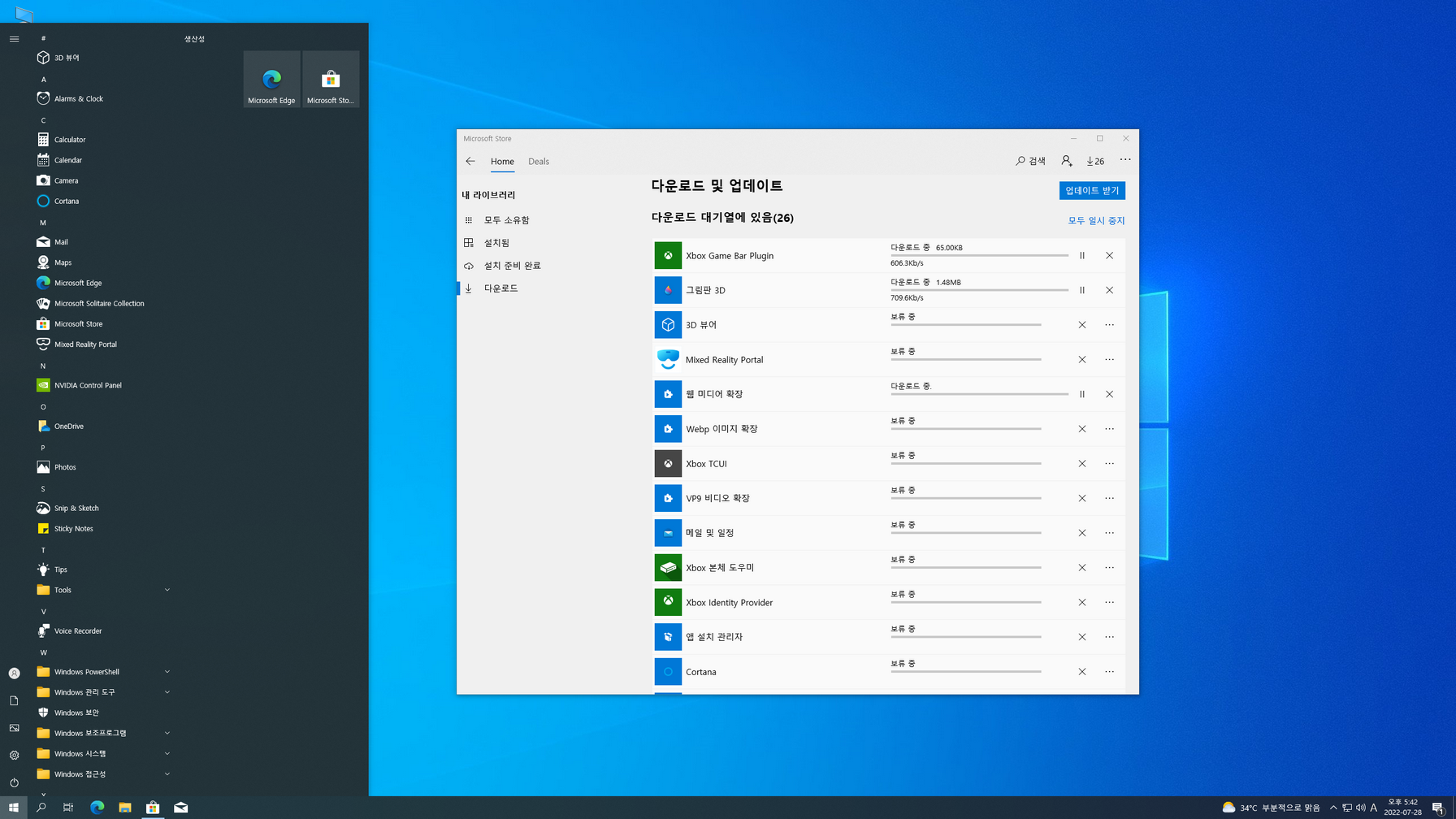 5번 에디션 참고 이미지(64비트) - 엣지 첫 실행 시 에러 메시지 / 모든 UWP 앱의 업데이트 적용