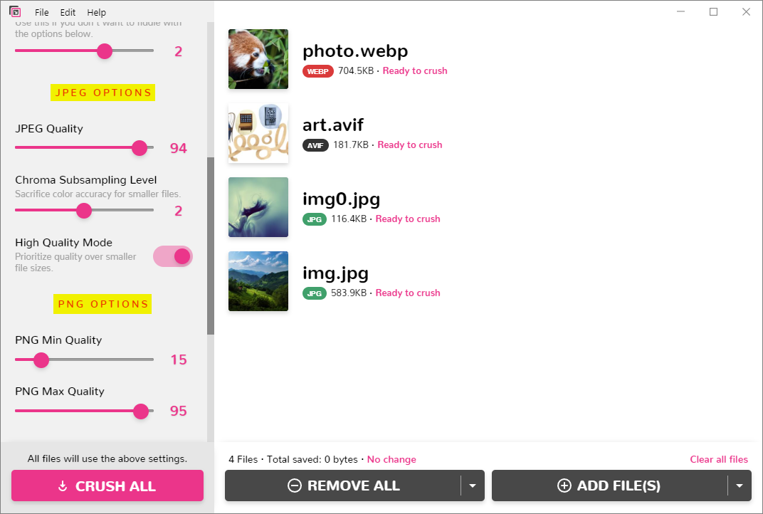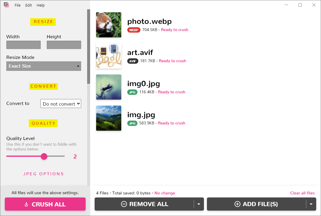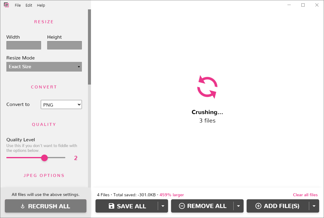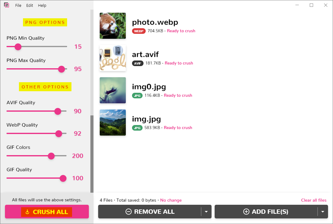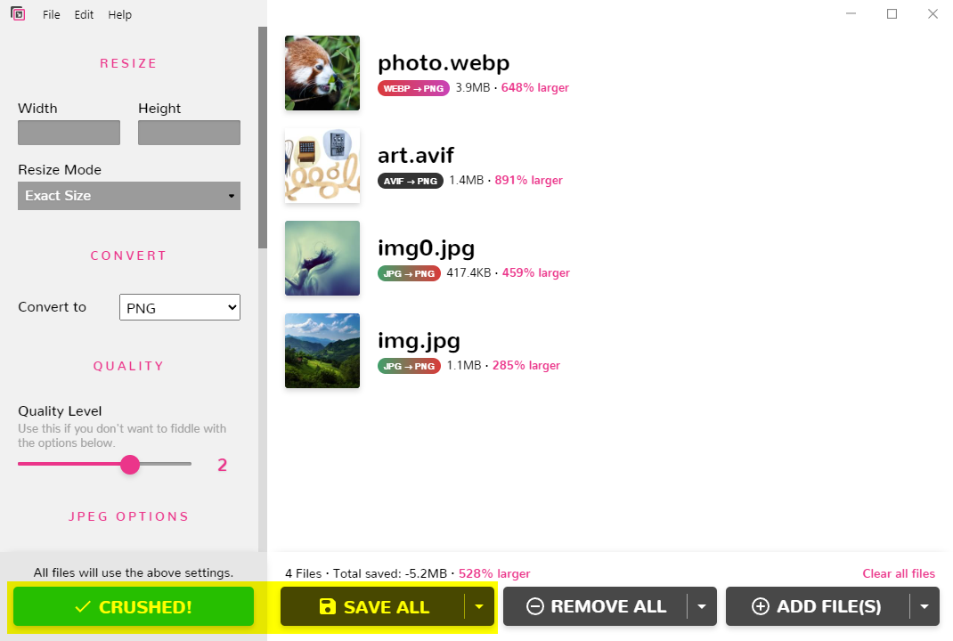 ▶ 'CRUSH ALL' 버튼을 클릭하여 이미지 일괄 처리