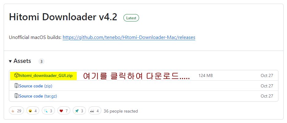 | 맥(Mac)용 다운로드 | v4.1-0.2/hitomi_downloader_GUI.dmg |