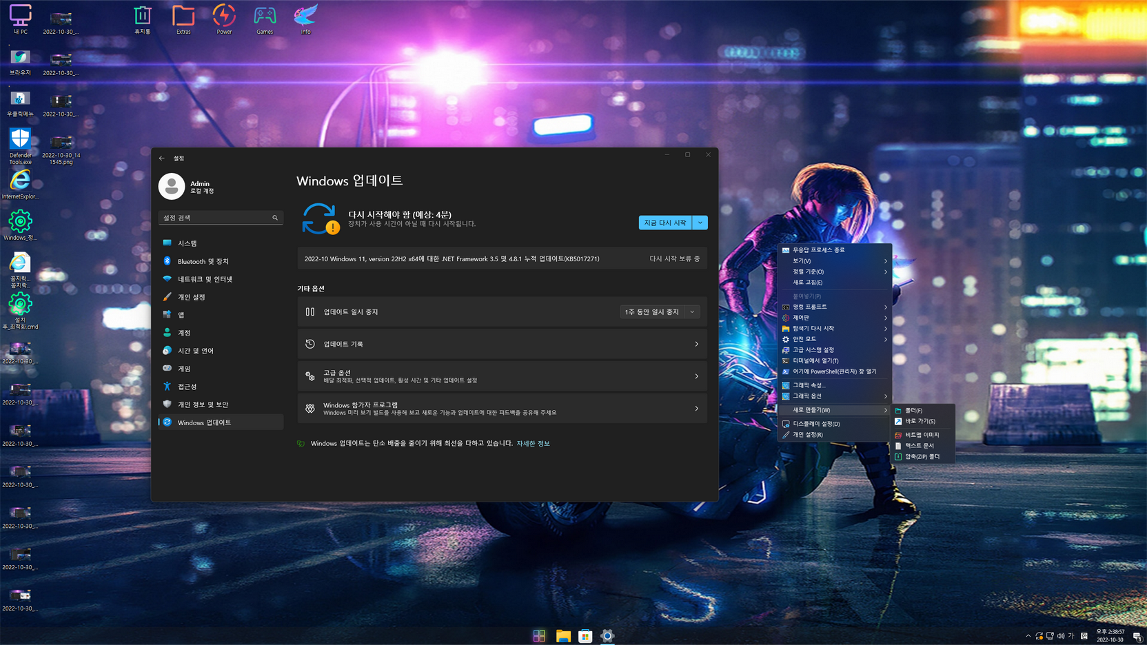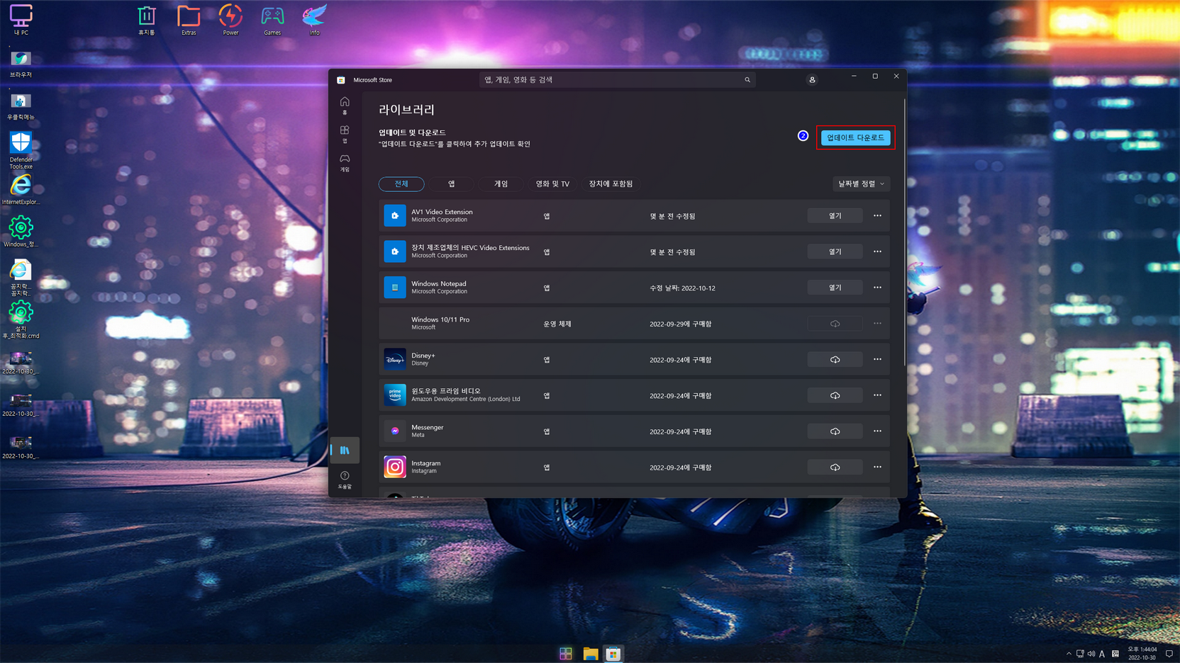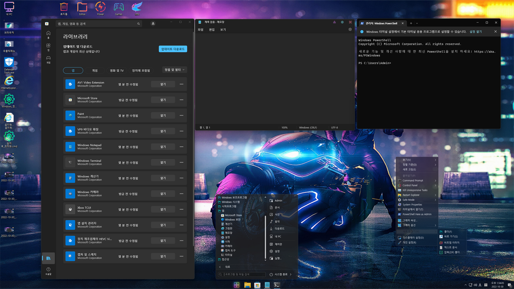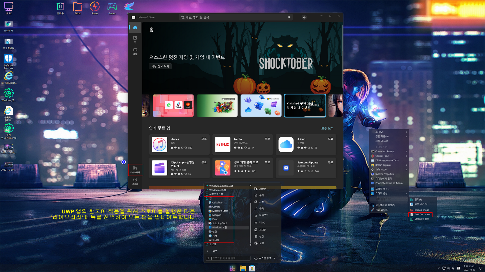 설치는 Admin(사용자 계정 - 관리자 권한) 계정으로 설치할 수 있으며, 용량문제로 *****************.esd 이미지로 마무리합니다. 일부 UWP / 시스템 앱들의 한국어 적용을 위해, 스토어 앱을 실행하여 모든 앱들을 업데이트해 줍니다.