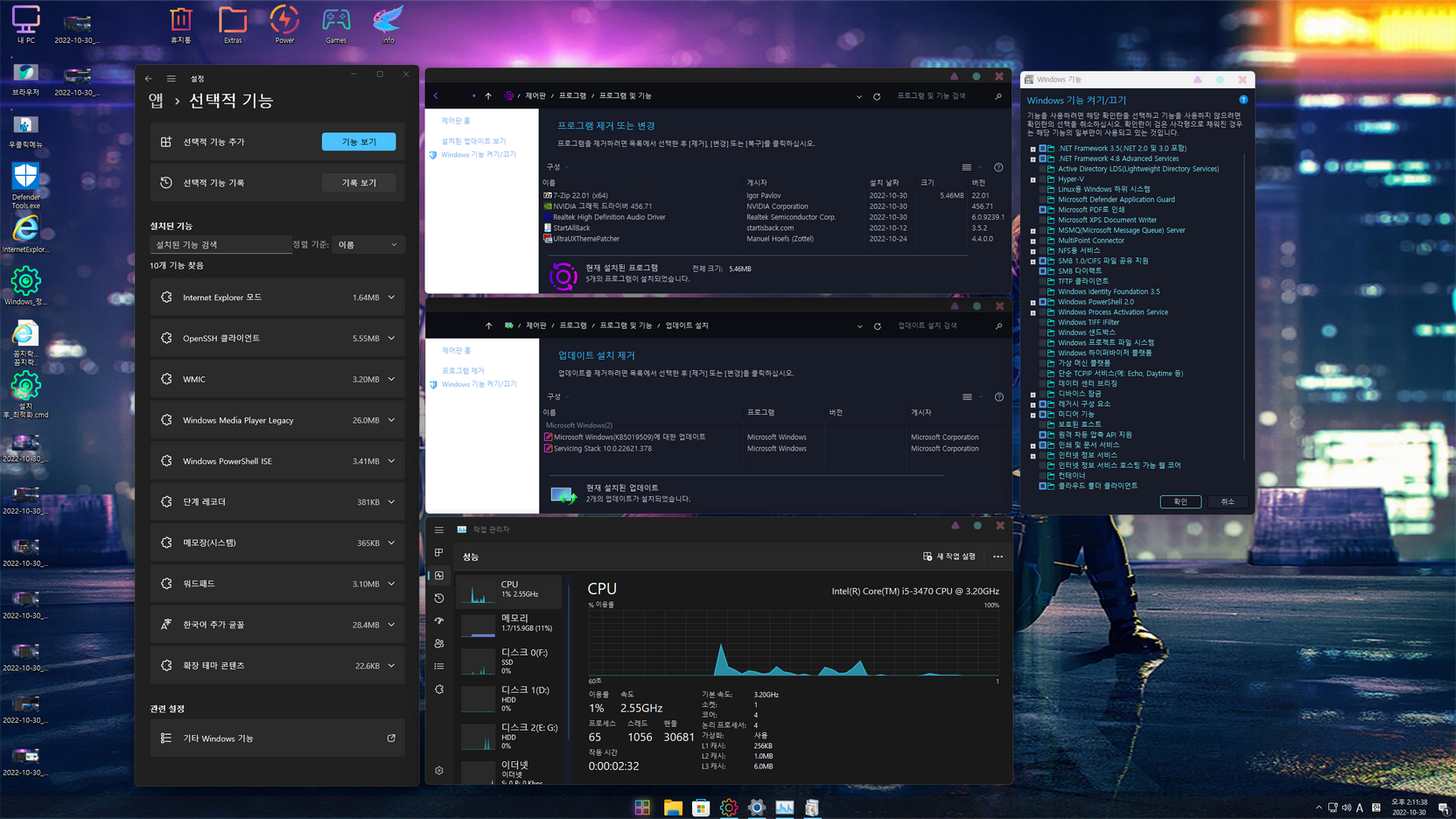 - 닷넷 3.5 / SMB1.0 / 레거시 구성 요소 기능 활성화