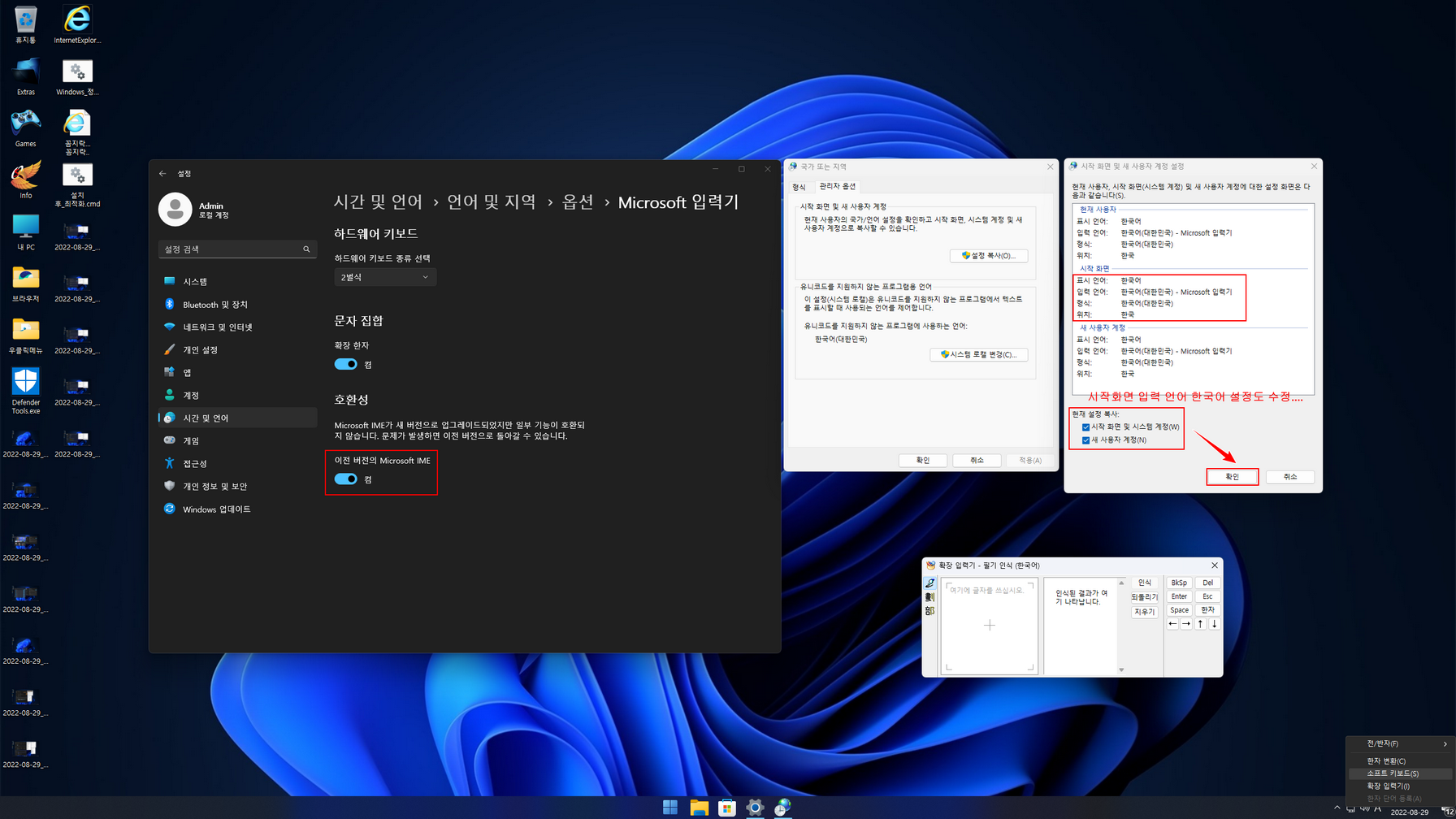 한글 입력기가 Windows 11 22H2부터 새롭게 바뀌었습니다. 아직 이 부분은 공부 중이라 부족한 부분이 있습니다. 기존의 한글 입력기는 Windows 11 22H2에서는 선택사항이라 밑에 캡처이미지를 참고하여 사용하시면 됩니다.