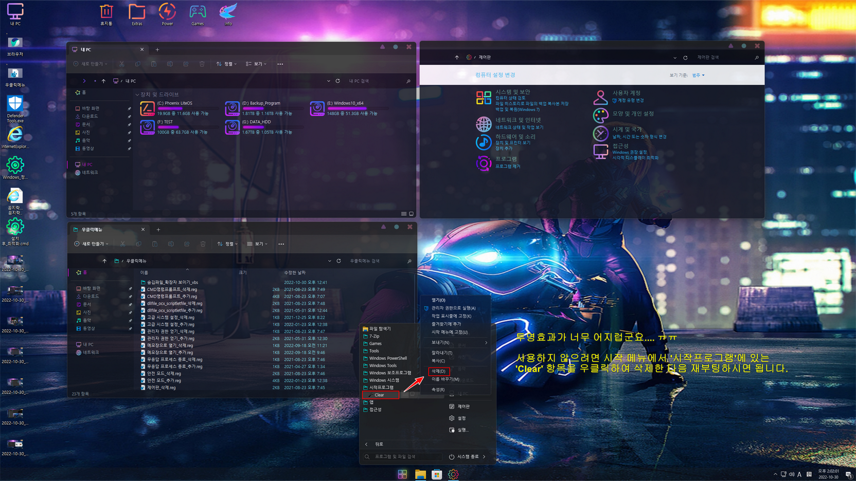 - WinRE(백업 및 복원) 삭제