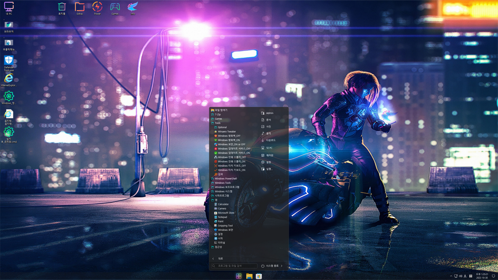 Index: 1 (사용자 Admin 관리자 권한, 디펜더 비활성화)