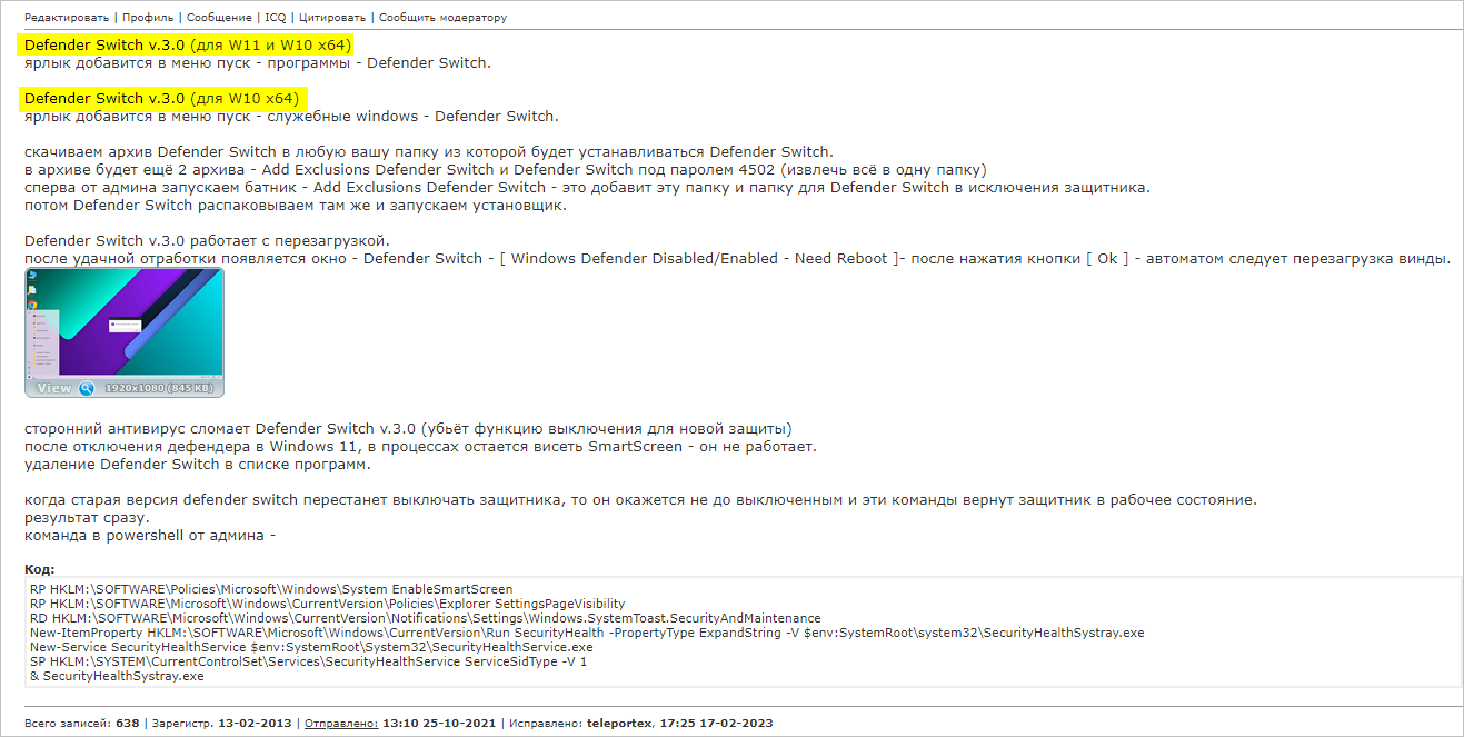 ▶ 제작자의 새로운 디펜더관련 스위치를 다시 설치하려면.....