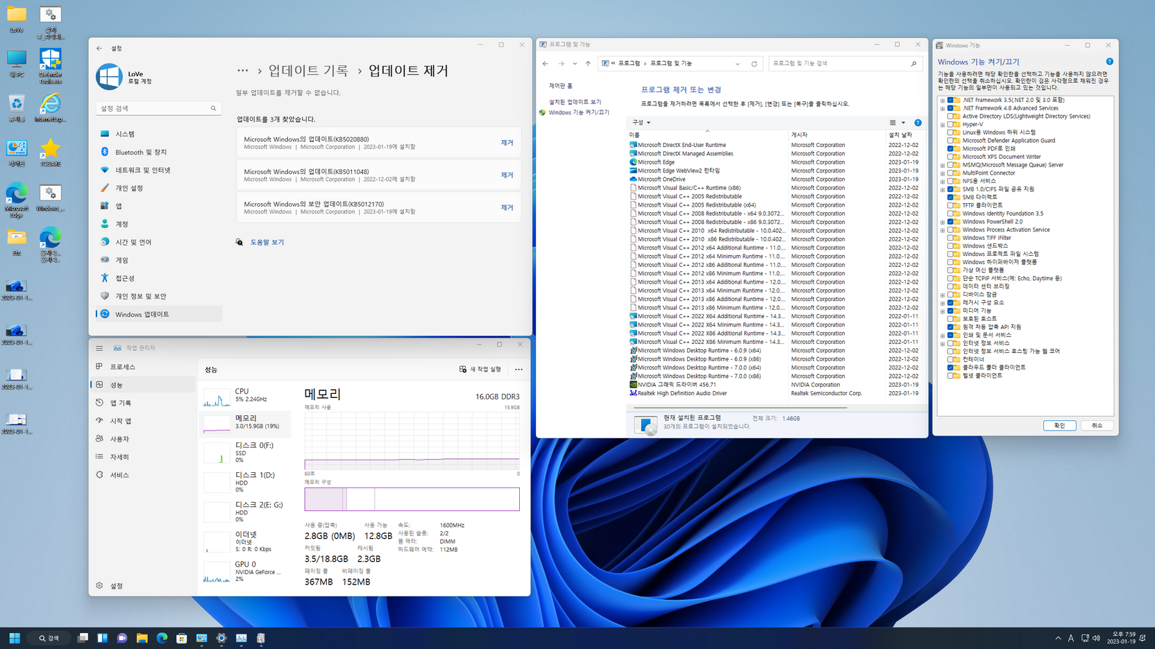 - Windows 업데이트 서비스 및 드라이버 자동 설치 비활성화